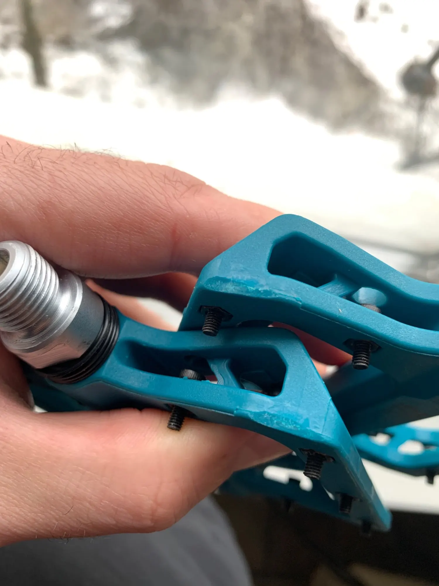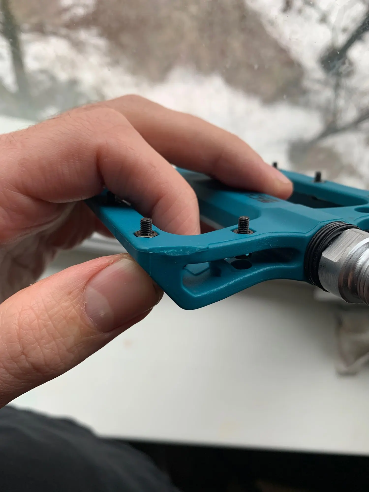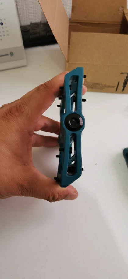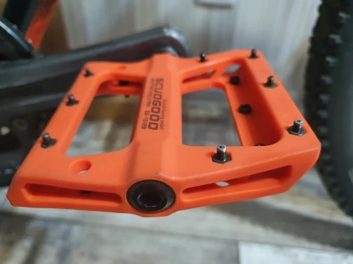 Хорошие лёгкие пластиковые педали. Шипы выполнены в качестве винтов, которые можно легко заменить при необходимости. Вращаются плавно, накатал на них 100 км без нареканий, ничгео не люфтит. Конечно, качество материала не самое лучшее и при сильном ударе можно сломать, но за такую цену всё устраивает. Заказываю второй раз и доволен.