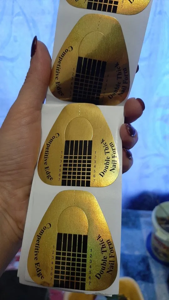 Хорошие формы. Отлично клеятся, не отлипают через секунду. Хорошо держат форму и отличны в использовании. Заказала 50 штук, пришёл не моток, а просто сложенные в гармошку. Очень быстро пришли. Буквально за 10 дней