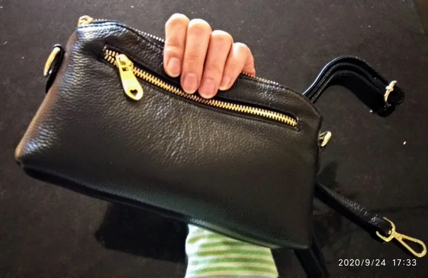 Сумка милая, натуральная кожа, хорошо сделана. Я немного беспокоюсь о металлических деталях, они выглядят отлично, но я надеюсь, что они будут выглядеть как они и не изменят цвет. В случае, если это произойдет, я оставлю дополнительный отзыв.