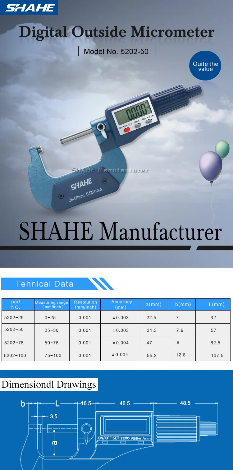 Цифровой микрометр, точный измерительный прибор, 25-50 мм, 0,001 мм
