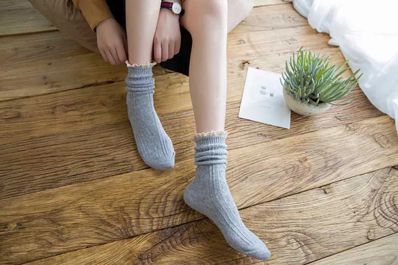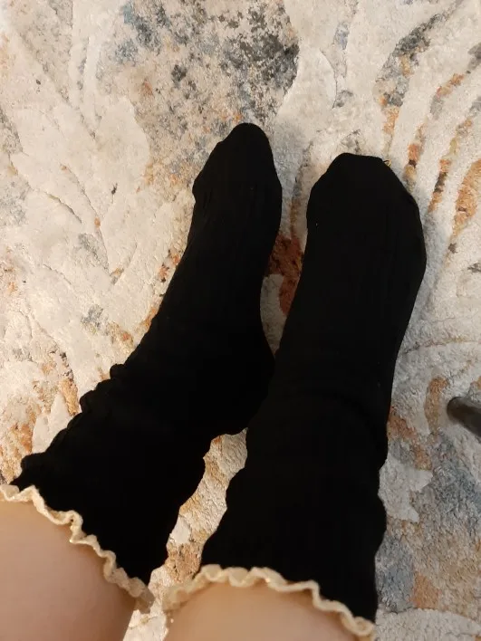 Носочки плотные, ткань толще чем у обычного носка, оборочки как на фото.