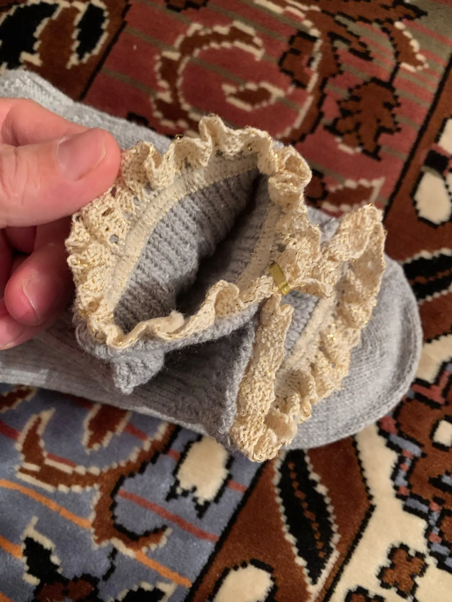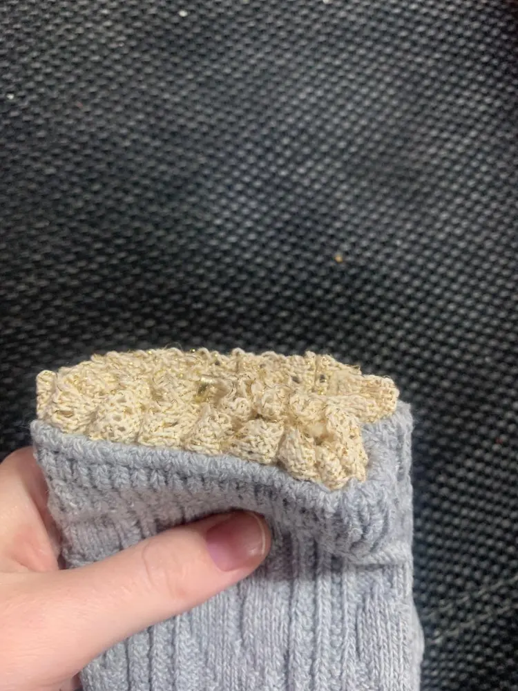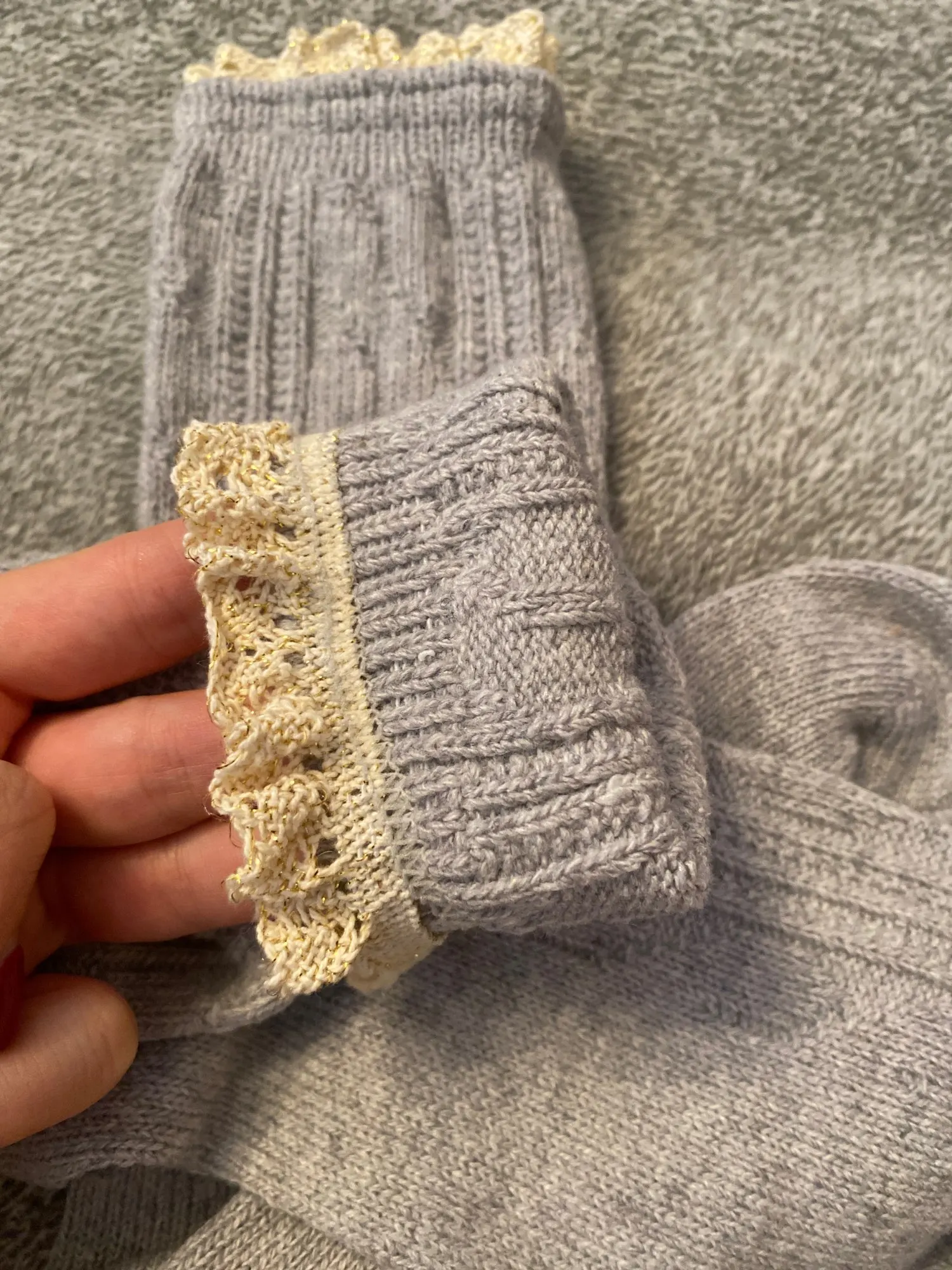 Хорошие носочки, в белой кружевной части носка золотистая нить добавлена, немного блестит. Красивые, тёпленькие