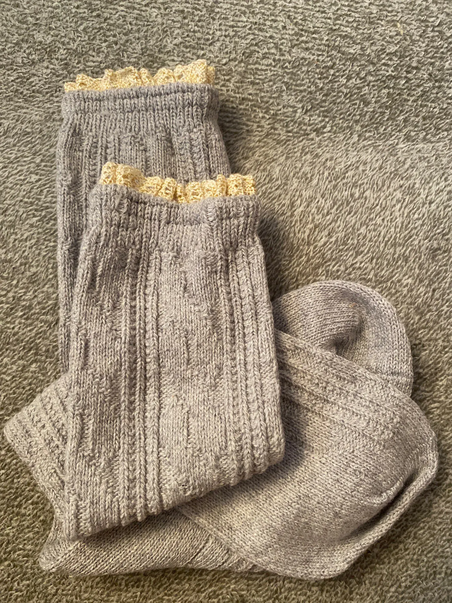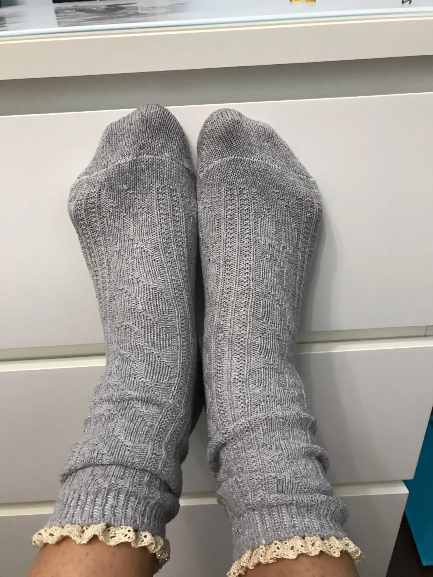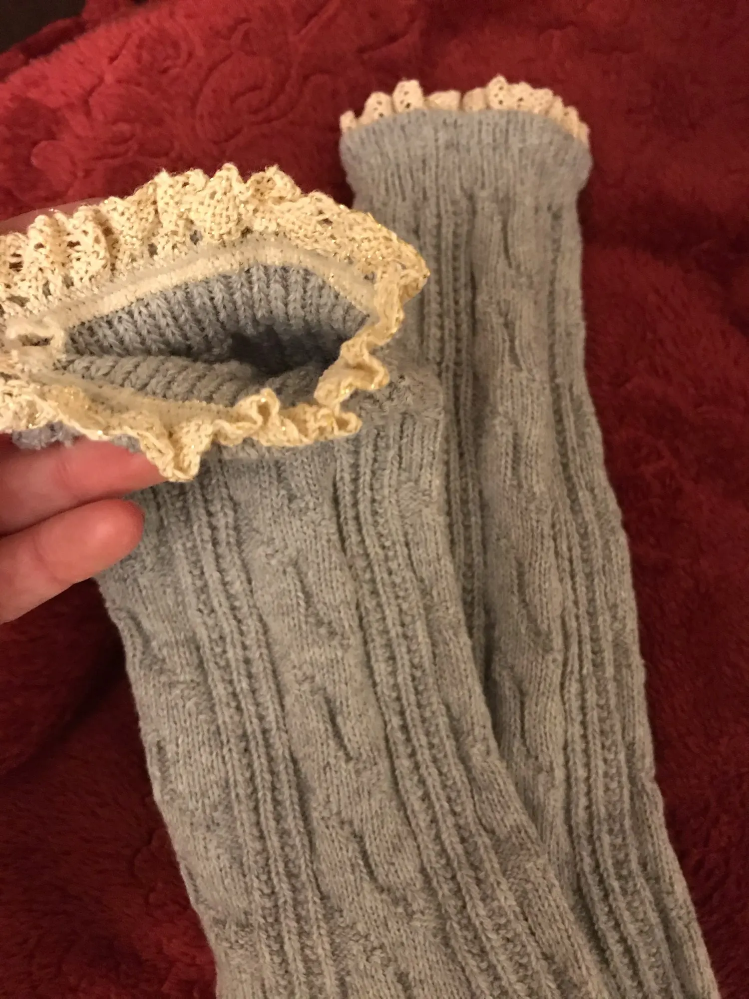 Хорошие носочки, в белой кружевной части носка золотистая нить добавлена, немного блестит. Красивые, тёпленькие