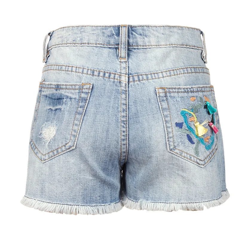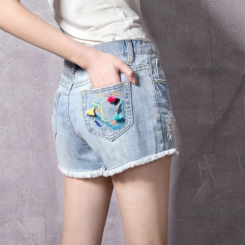 Женские джинсовые шорты ARTKA, голубые эластичные рваные шорты из хлопка с цветочным принтом на кармане, KN11072X, на лето 2019