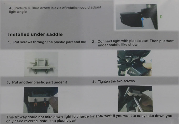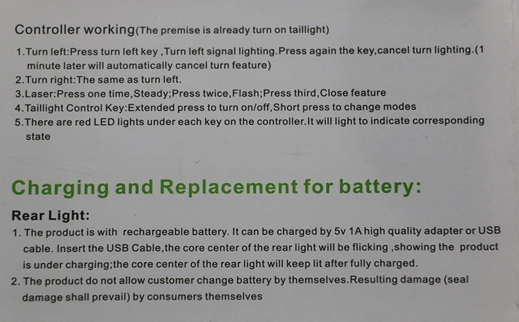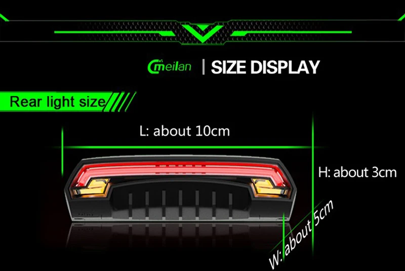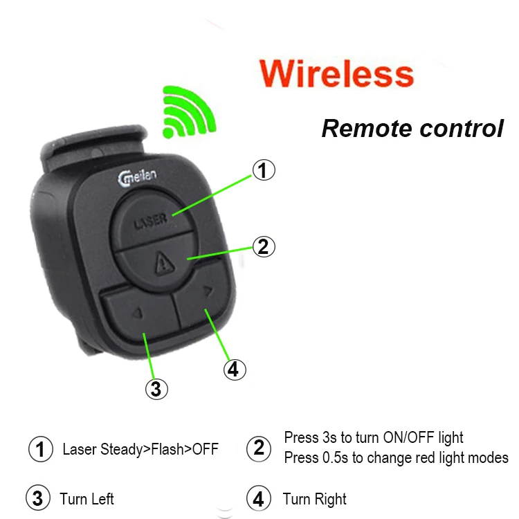 Этот свет сочетает регулярное визуальное предупреждение с поворотом света и лазерными лучами, обеспечение полного цикла визуального предупреждения. Это особенности в пульте управления таким образом, чтобы держаться подальше от сложной проводки на вашем велосипеде. Оснащен качественными светодиодный ными чипсами и большим объемом аккумуляторной батареи, эта лампа способна удовлетворить большинство визуальных предупреждений, необходимых для катания на велосипеде.
