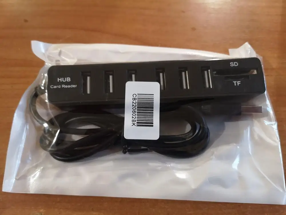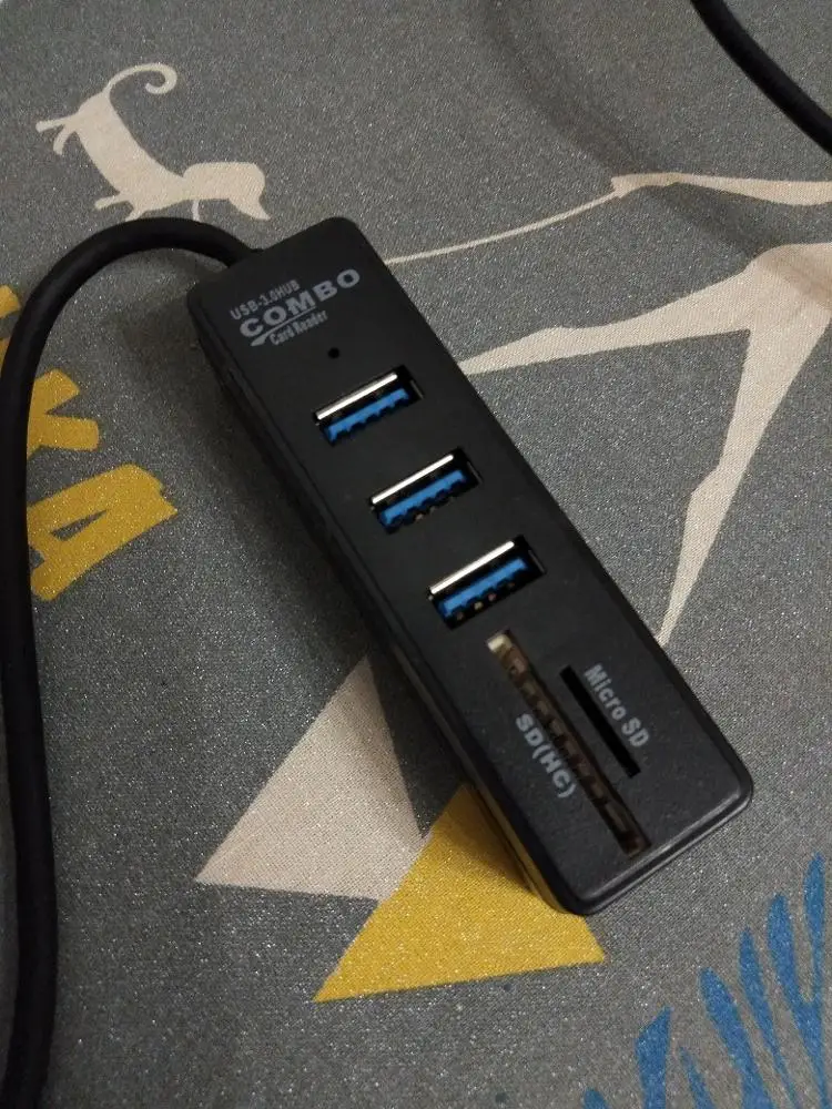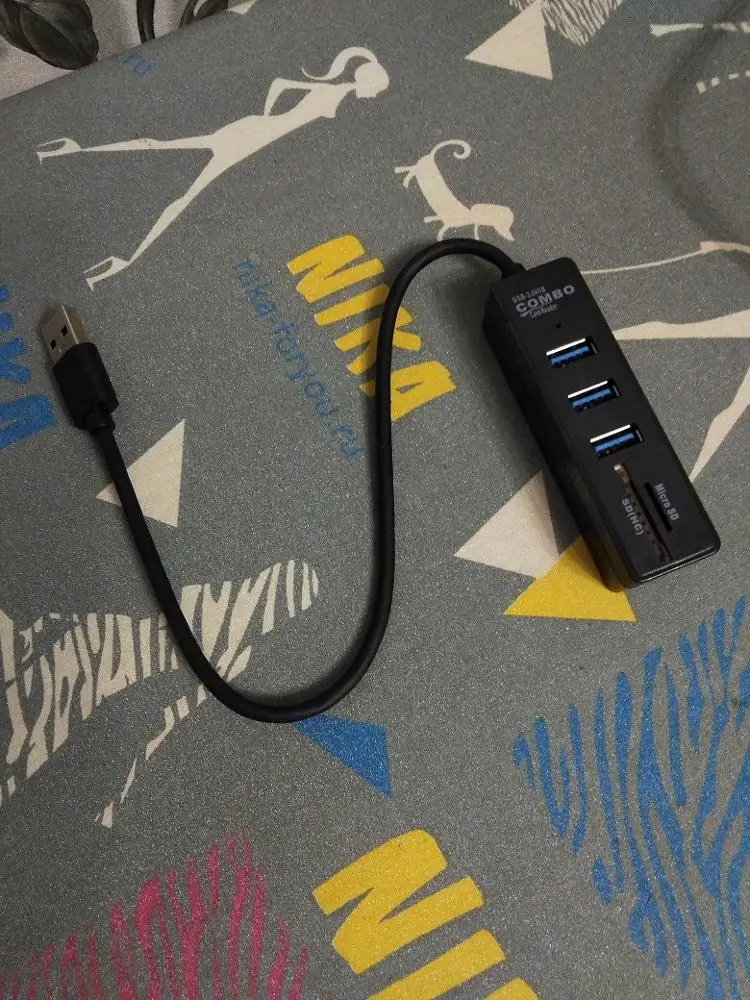 Брала USB разветвитель с 3 портами USB 2.0 и картридером SD/TF . Размер 22*21*85 мм с кабелем длиной 15 см. Написано в описании, что нельзя использовать более 5 В/500 мА*ч, что скорость передачи данных до 480 Мбит/с. Пока не пользовалась, но производит хорошее впечатление.