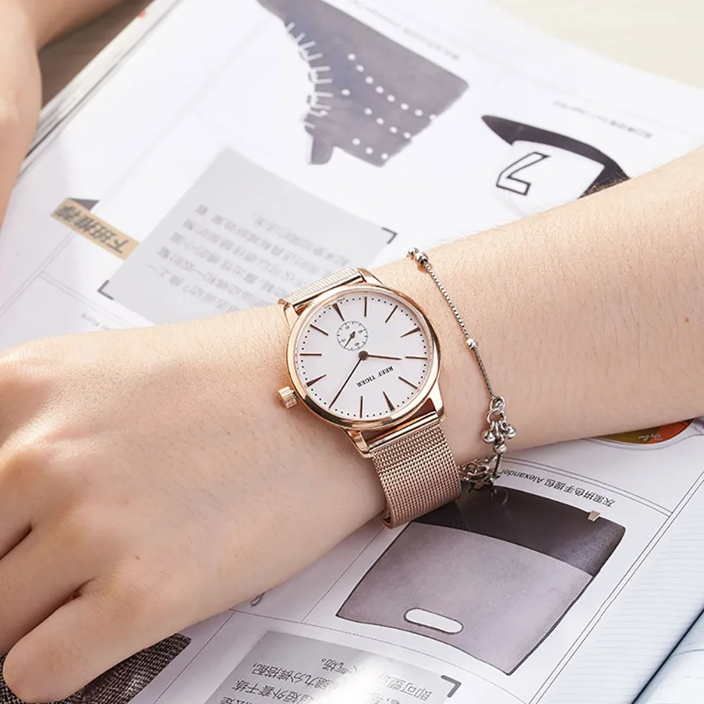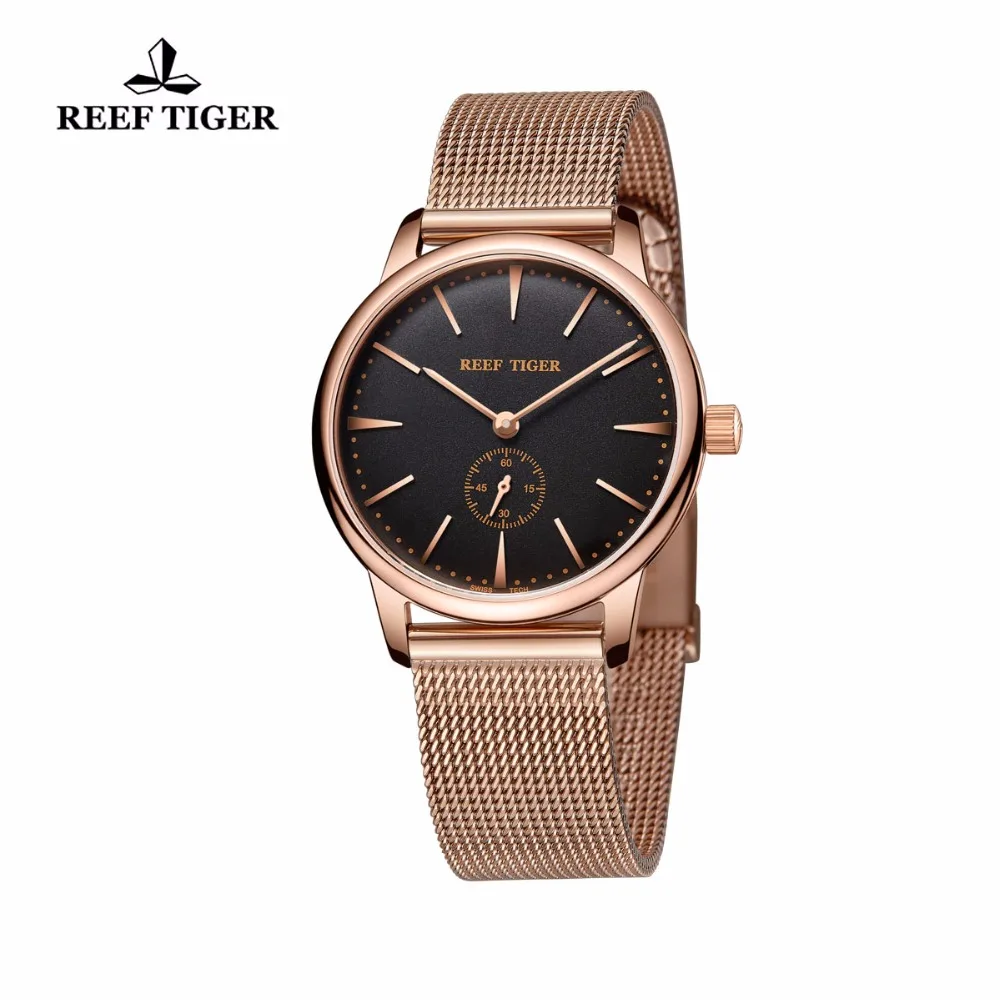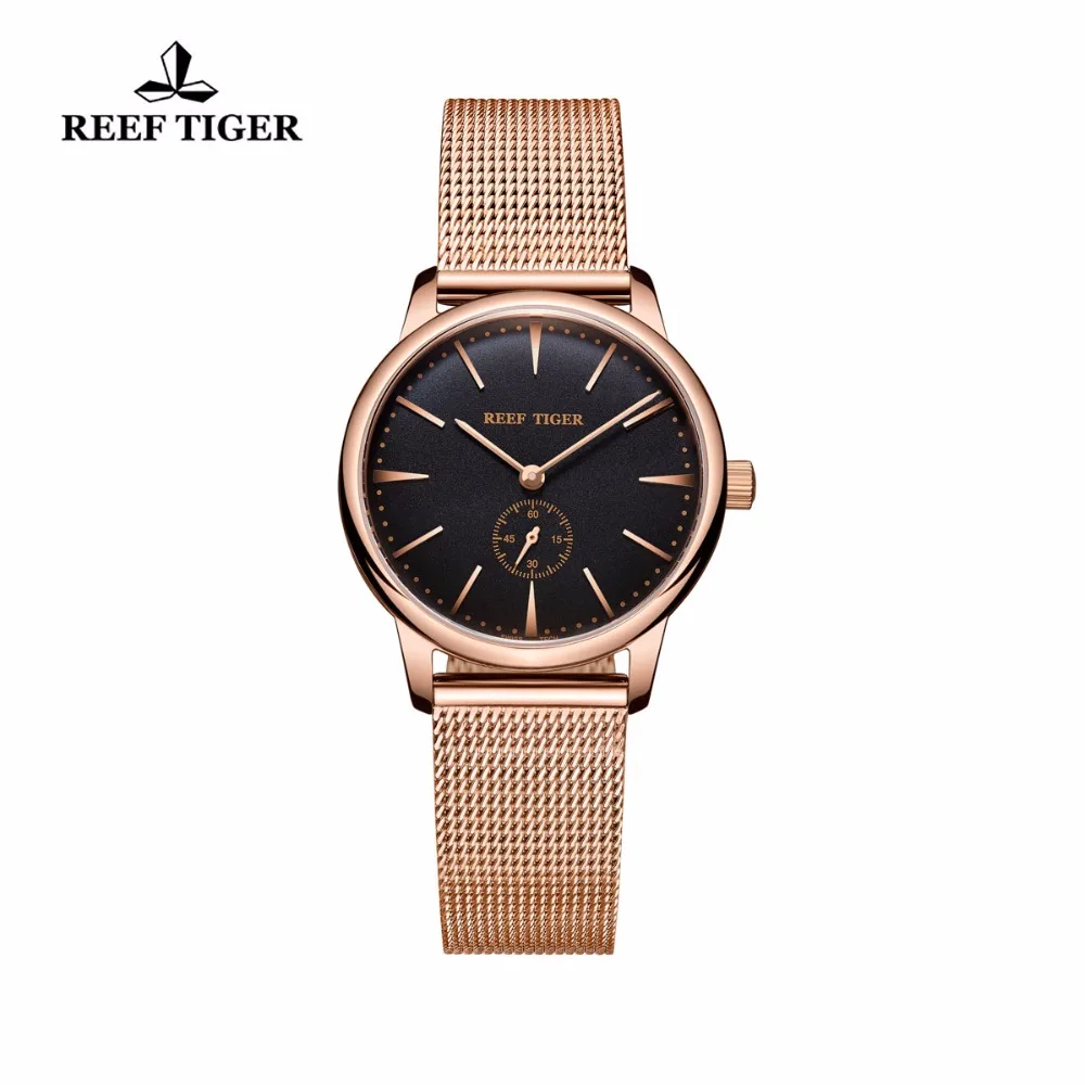 Reef TigerRT Роскошные винтажные часы, ультратонкие парные кварцевые часы для женщин, аналоговые наручные часы цвета розового золота, RGA820