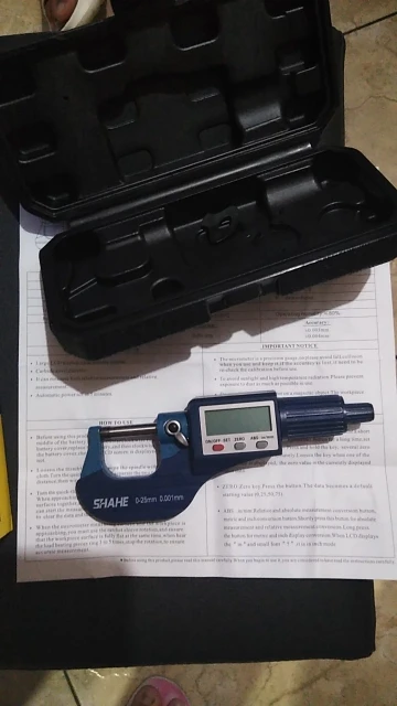 Товар пришёл раньше срока. Инструмент исправен. Проверил мерными плитками в разных диапазонах. Батареек нет в комплекте. Пришлось бежать покупать. Но это мелочи. Да, совсем забыл, футляр очень хороший, его наверное даже уронив кирпич не сломать. В общем я приобретённым инструментом очень доволен. Посмотрим как покажет себя в процессе эксплуатации.
