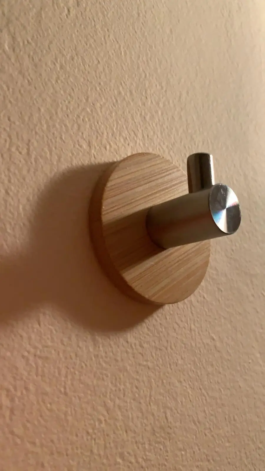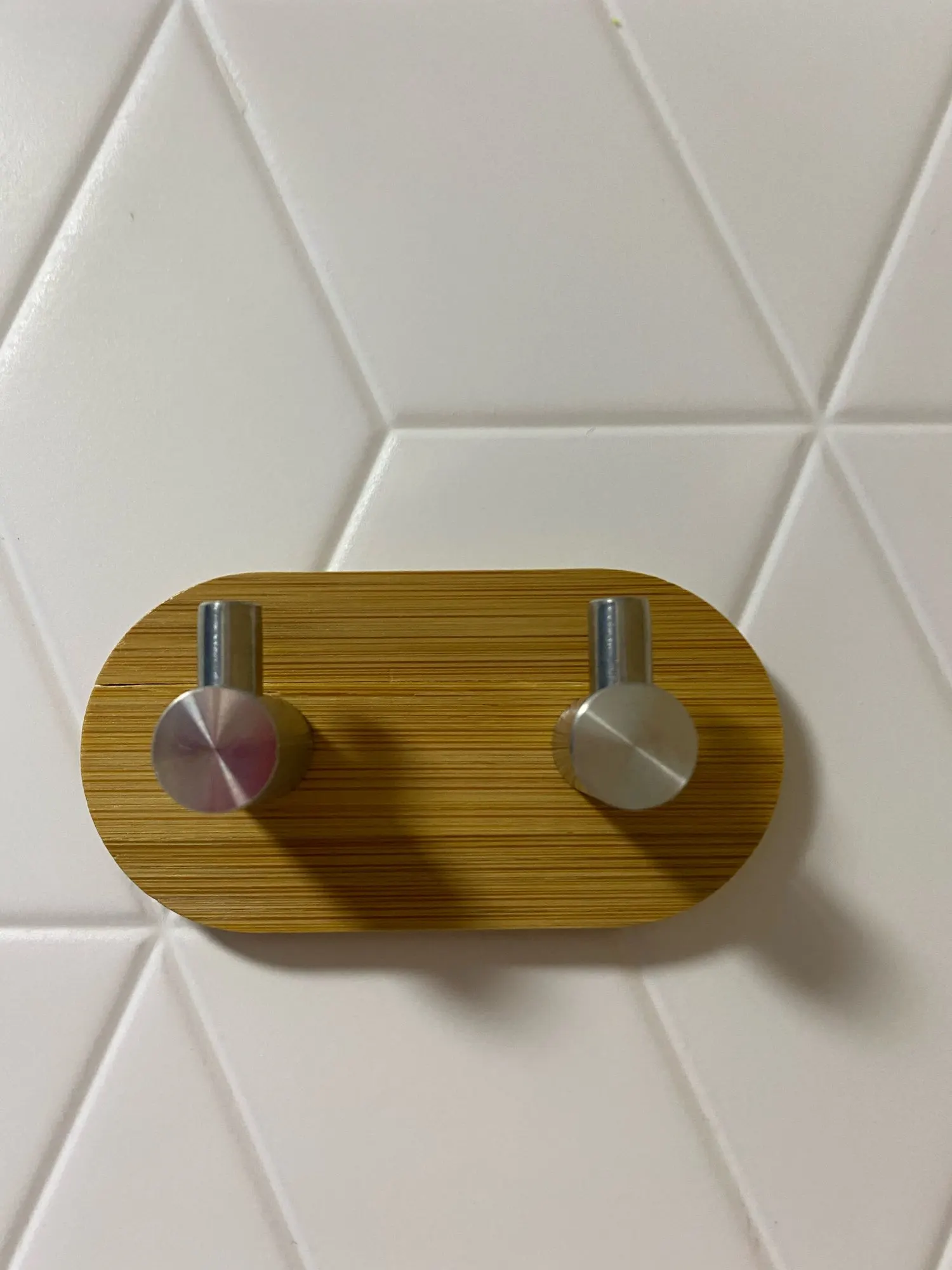 Заказ пришел быстро - чуть больше 2-х недель. Я думал, что вешалки будут маленькими, но ошибся. Деревянное основание диаметром 5 см, толщиной мм 5, крючок солидный. Сзади самоклеящая лента 3М. Заказывал 2 вешалки. Деревянные основания чуть разного цвета. Приклеил. Пока держится очень крепко. Посмотрим, как будет держаться в ванной.