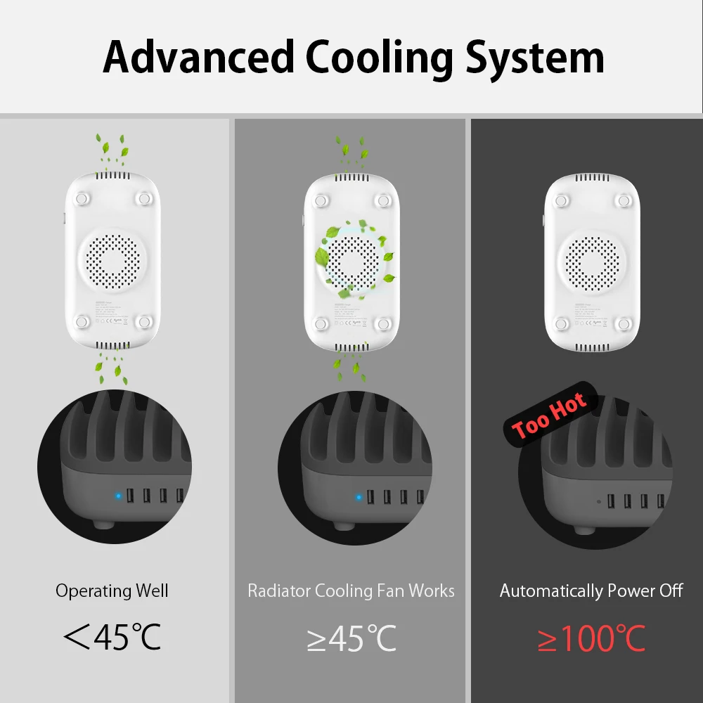 Индивидуальное Универсальное зарядное оборудование в общественных местах 10 портов USB зарядка с подставкой, встроенный охлаждающий вентилятор, умный контроллер, синхронное выпрямление MPS, 120 Вт Высокая мощность