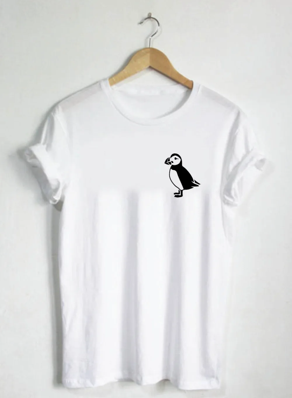 Puffin рубашка-футболка с изображением птиц, унисекс, футболка или женская футболка, мужской подарок, ледяная птица, пингвин, милый Графический Seabird-D187