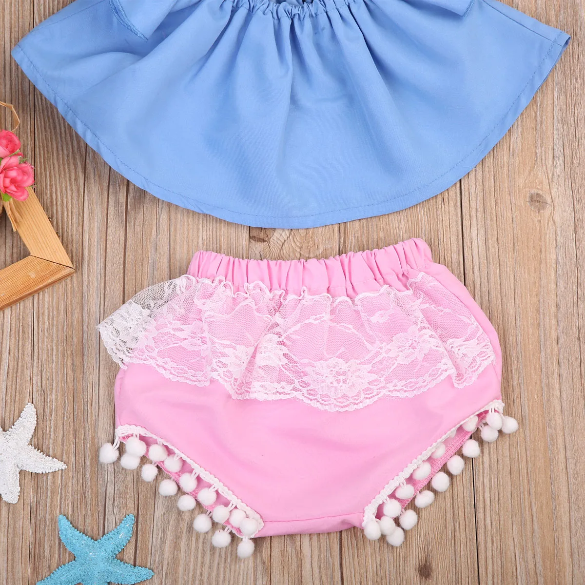 Комплект одежды для новорожденных девочек, топ с открытыми плечами, футболка + шорты + повязка на голову, комплект из 3 предметов, Размер 0-24 м