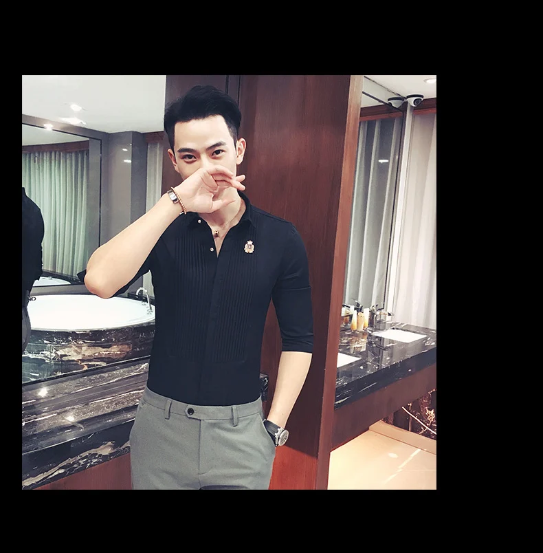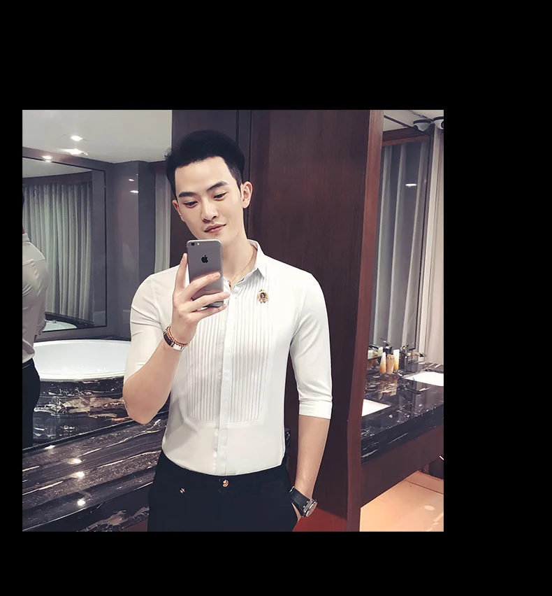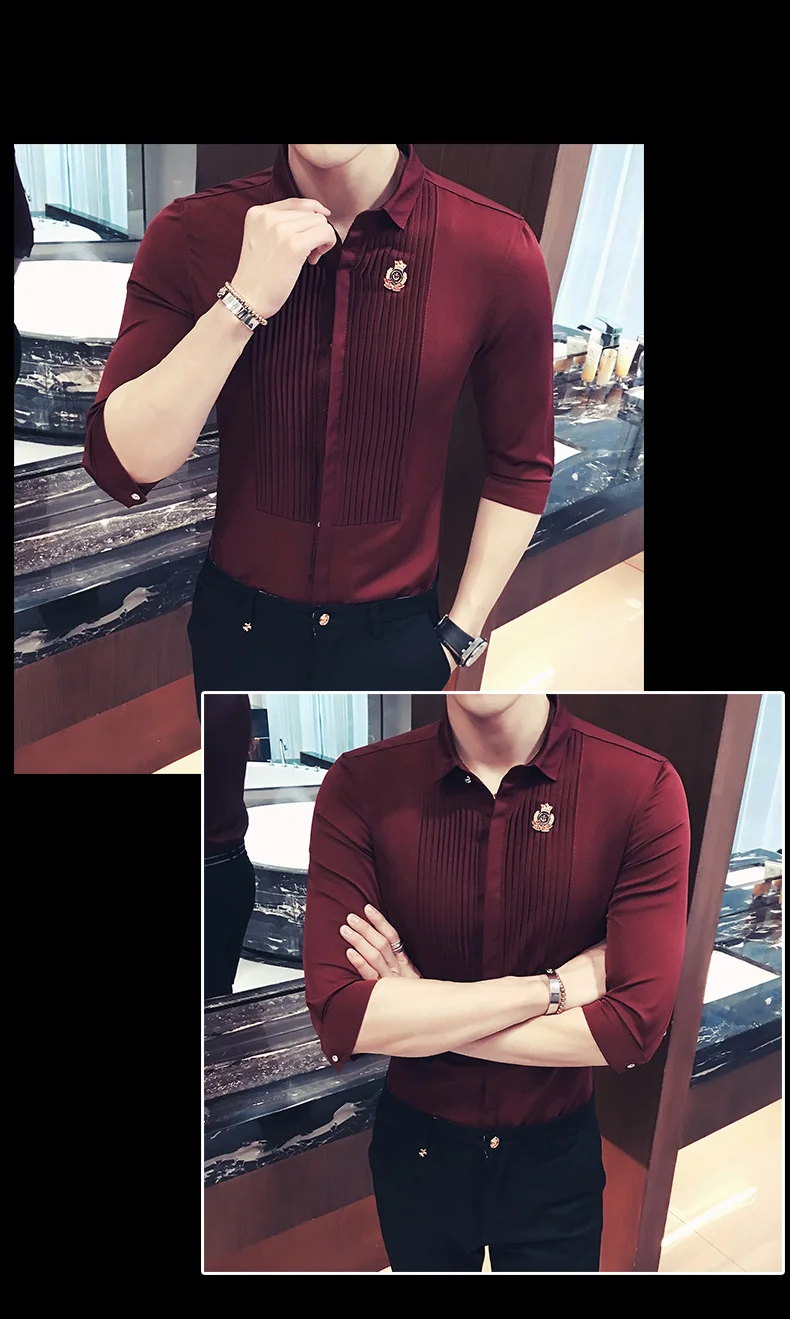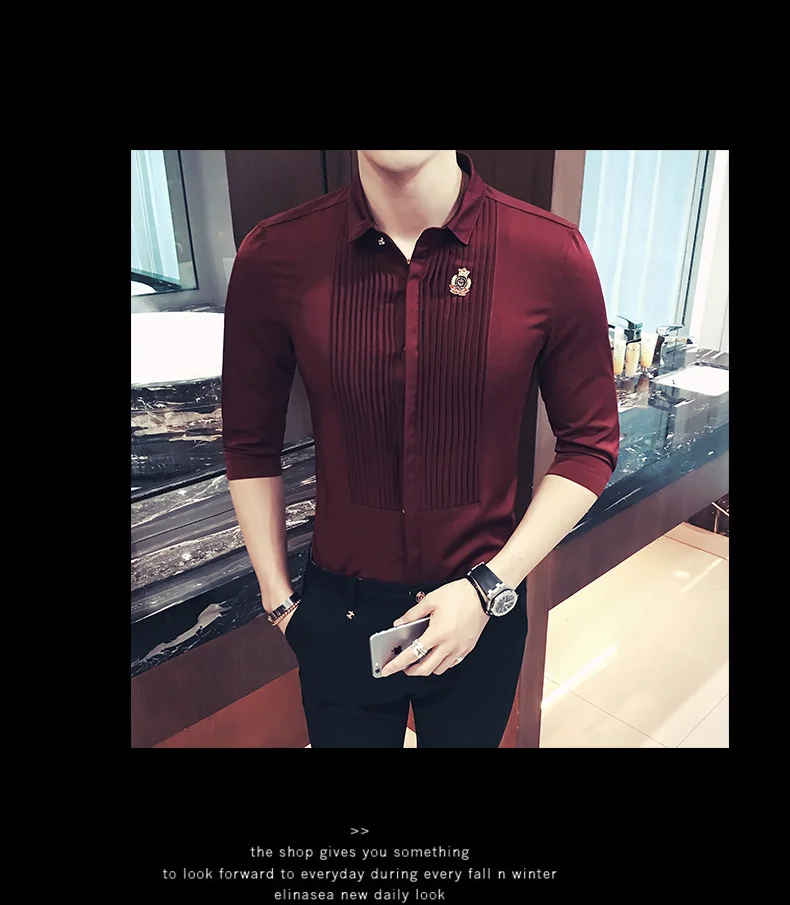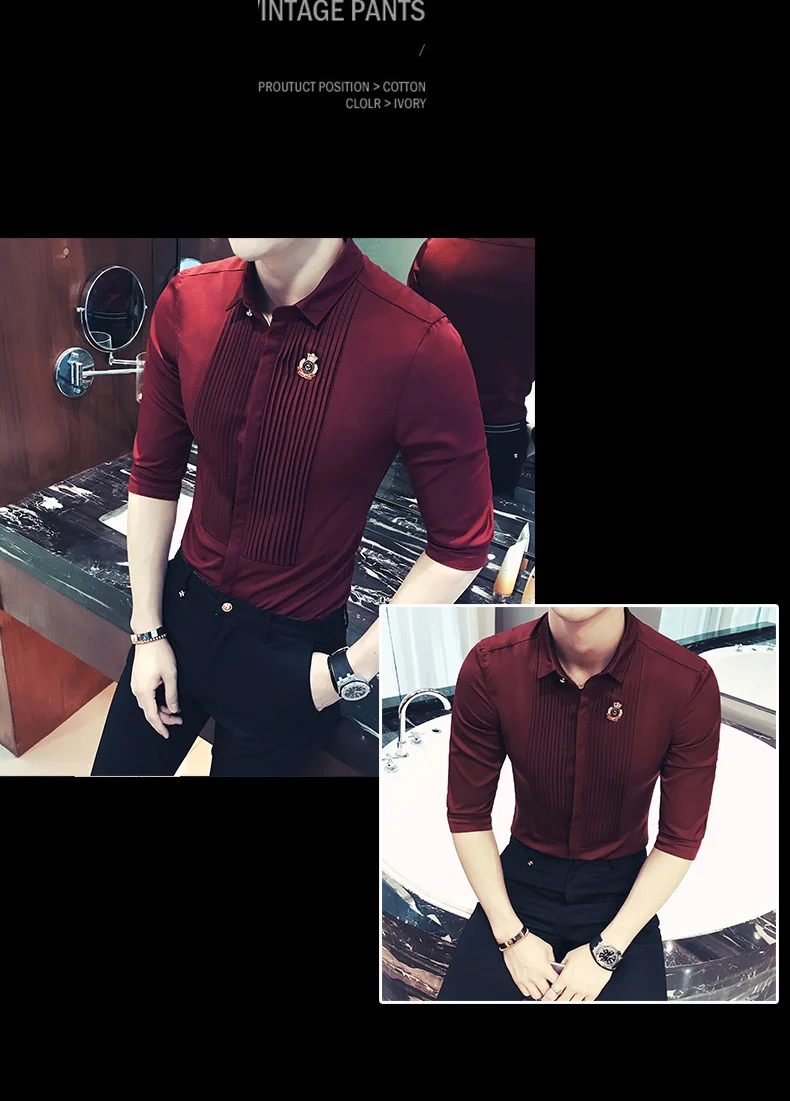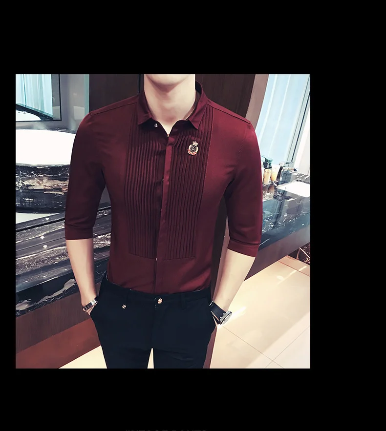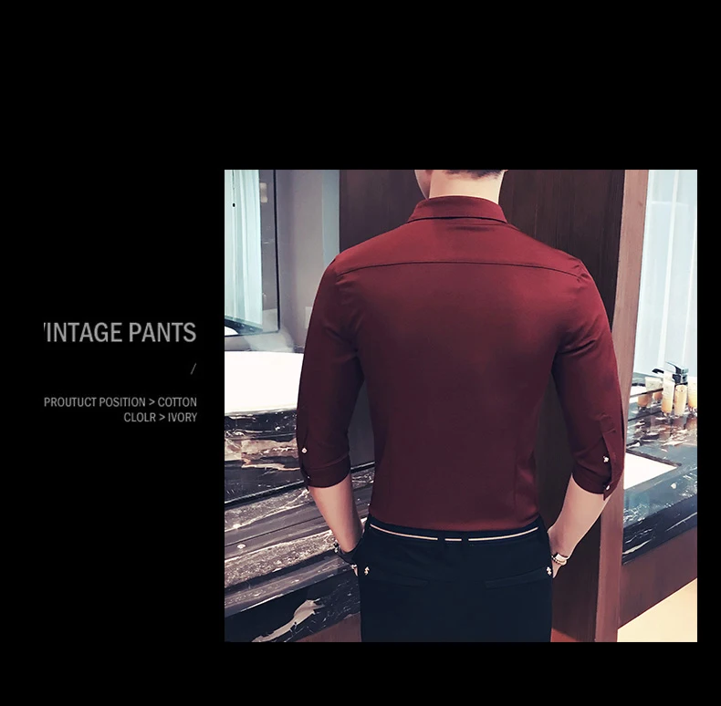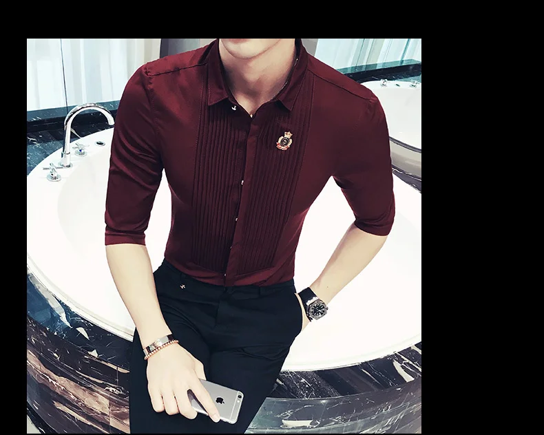 Мужская классическая рубашка Camisa Social Masculina, приталенная рубашка с коротким рукавом, цвет бордовыйБелыйЧерный, лето 2018