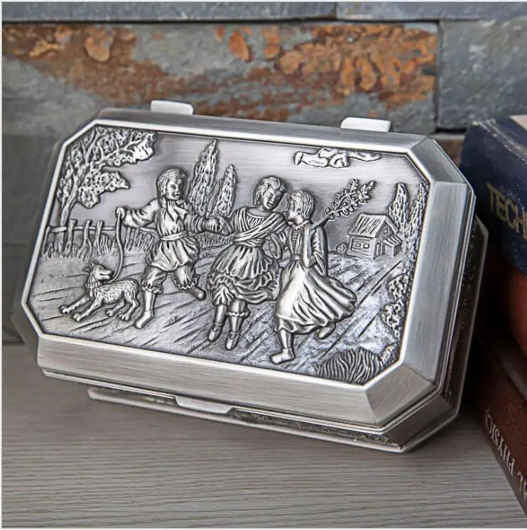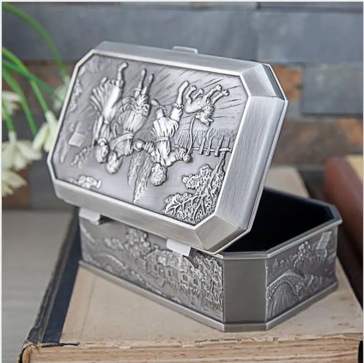 Номер товара; Z173Наименование товара; Европейский античный оловянный металлический ювелирный ящик; Металлический оловянный сплавЦвет; Античный оловянный цветРазмеры; Общая длина: 13 см x 8,5 см x 5,5 смОсобенности: металлический материал, средний размер, резная поверхность цветка. Красивая коробка для хранения ювелирных изделий, хлопковая коробка для хранения.
