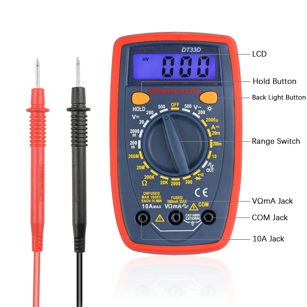 Цифровой мультиметр NEWACALOX, тестер переменногопостоянного тока, амперметр, вольтметр, портативные зажимы, тестер емкости, автомобильный аккумулятор, тестер