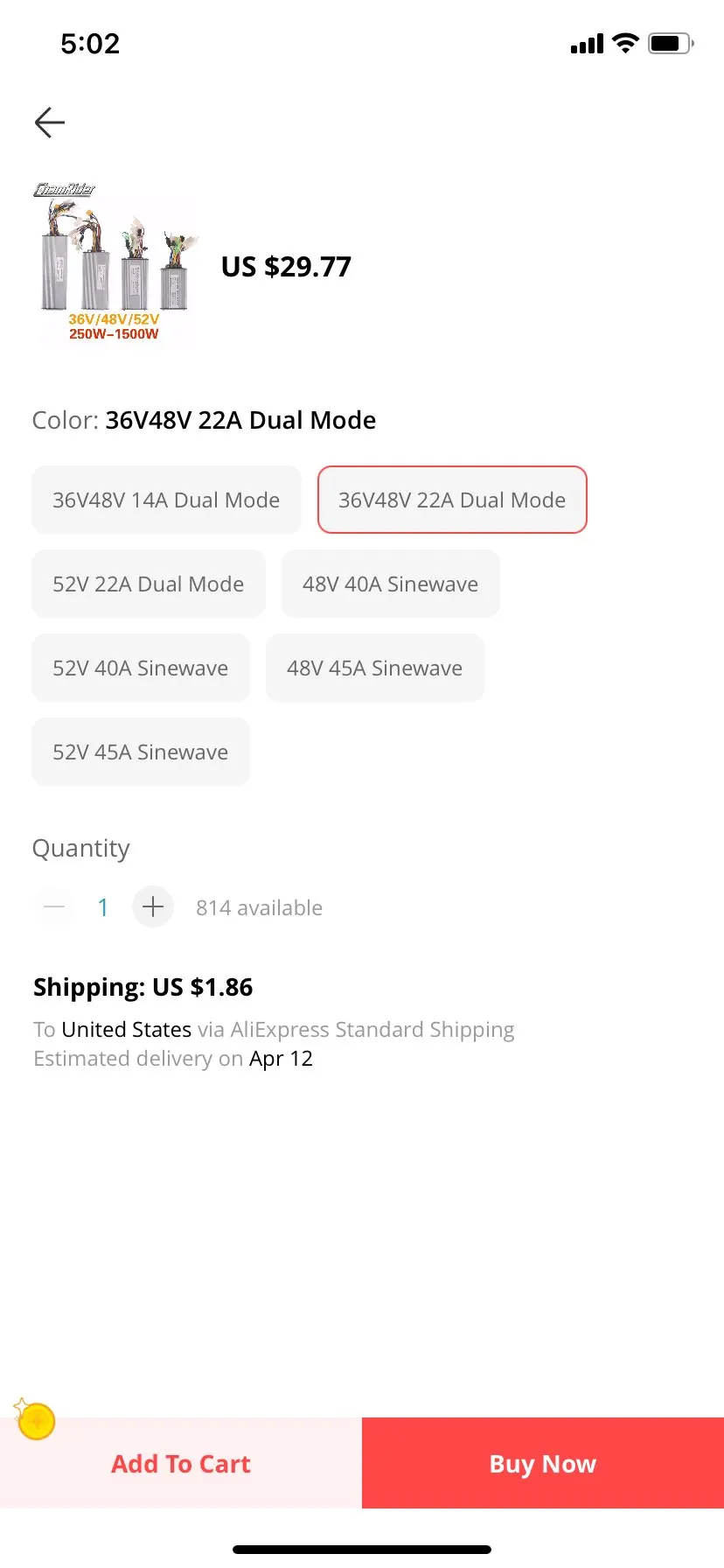 Страна: FR Color: 48V 40A Sinewave Доставка: Standard Shipping 09.10.2020