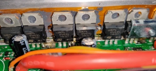 Этот контроллер значительно хуже оригинального. Плата управления светом отсутствует, контакты, выходящие на освещение, просто припаяны к контактам питания, и нужен внешний переключатель. Транзисторы стоят STP110N7F6 68V 110A вместо TK150E09NE 85V 150A. Вместо твердотельных конденсаторов стоят обычные электролиты. Температура двигателя на дисплей не выводится (всегда 15 градусов). Температура LM317 >80 градусов, резистора >90 градусов, от чего греется сама плата и находящиеся рядом электролиты. Как правильно было предложено ранее - необходимо нанести термопасту под транзисторы, и перенести LM317 на корпус. От себя добавлю, что резистор тоже желательно немного отогнуть и через термопасту отвести тепло на корпус. Белый провод, идущий в x5, необходимо перепаять в x4(P15), затем, прошив Flexible OpenSource firmware, получаем температуру двигателя и еще массу настроек как с ПК, так и на смартфоне через Bluetooth.