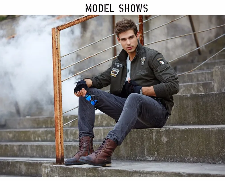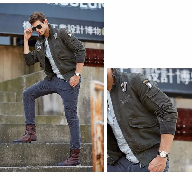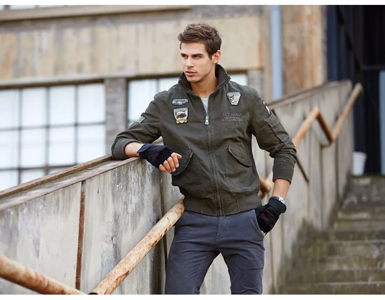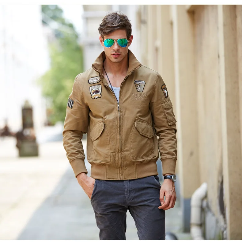 Мужская хлопковая куртка в стиле милитари, приталенная куртка-пилот...