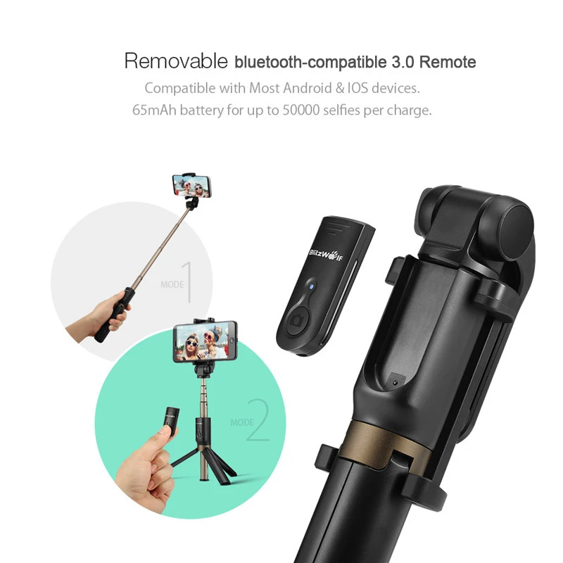 Селфи-палка BlitzWolf BW-BS3, совместимая с bluetooth, гибкая селфи-палка, стабилизатор для iphone, xiaomi