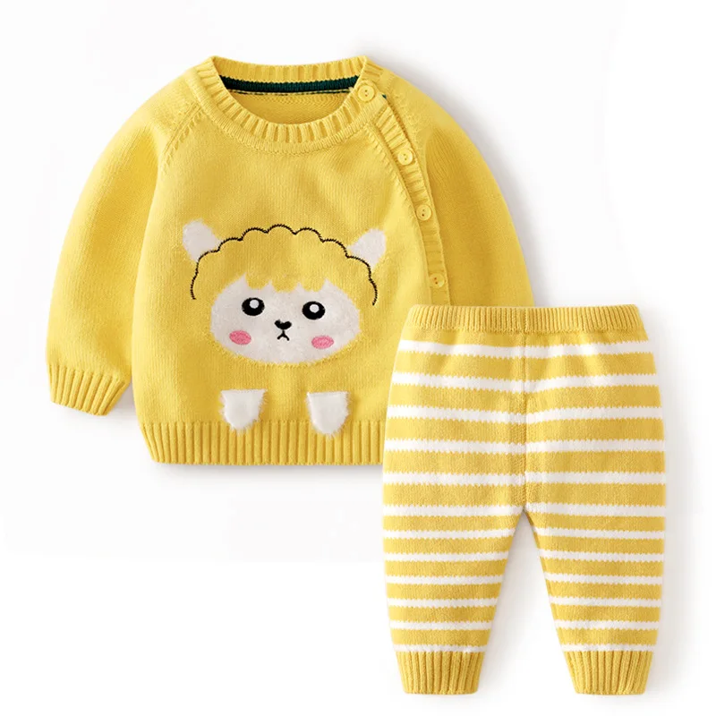 2 шт Малышам Мальчикам Комплект Шерсть Хлопок Вязаный Свитер Комплекты Для Девочек Мальчиков Младенцам Тёплый Пуловер Штаны Костюм Новорожденным Малышам Комплект Одежды