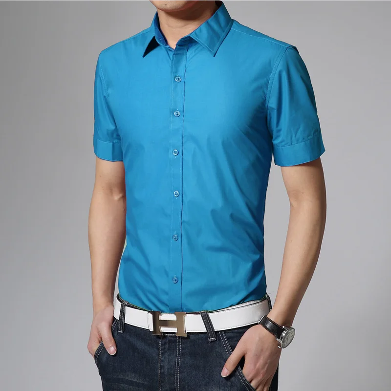 Мужская приталенная рубашка с коротким рукавом, повседневная Однотонная рубашка с короткими рукавами, размеры до 3xl, для лета, 2016