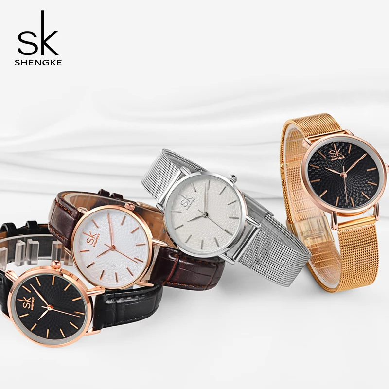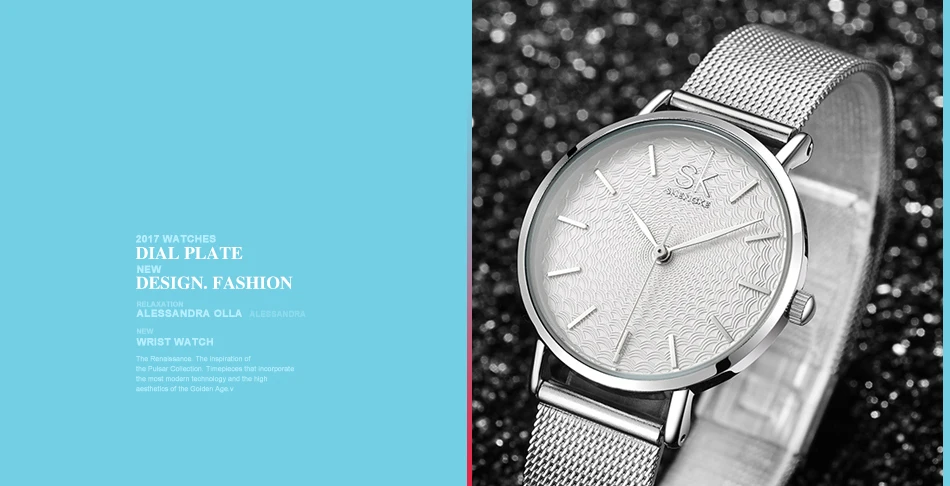 Женские наручные часы SK, супертонкие, из нержавеющей стали, с сеткой