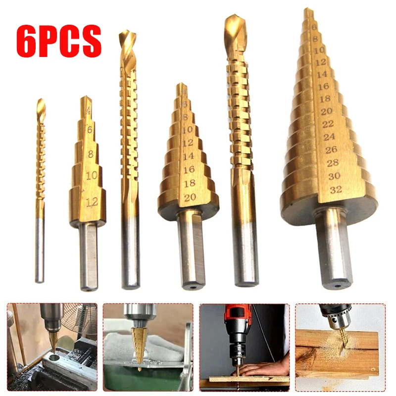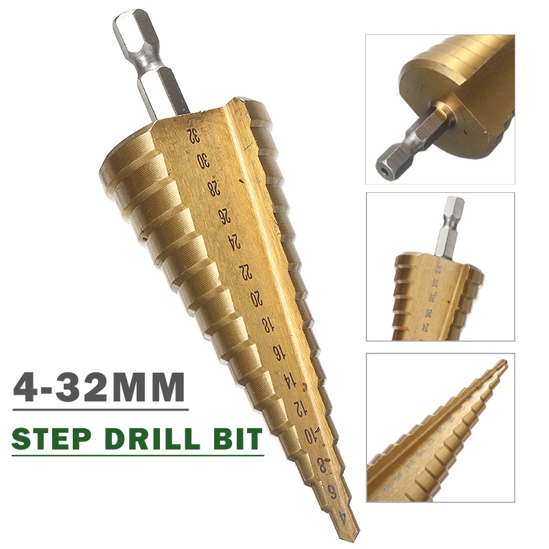 1 шт. высокоскоростные ступенчатые сверла с титановым покрытием Ступенчатое Коническое сверло 14 дюйма шестигранный хвостовик деревообрабатывающие сверлильные электроинструменты 3-13 мм
