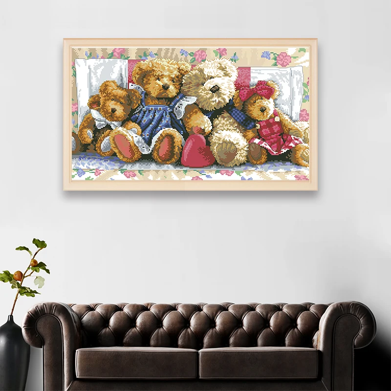 Тедди семья игрушечных медведей из мультфильма живопись Счетный пустой на холсте 11CT 14CT DIY китайский набор вышивки крестом набор вышивки