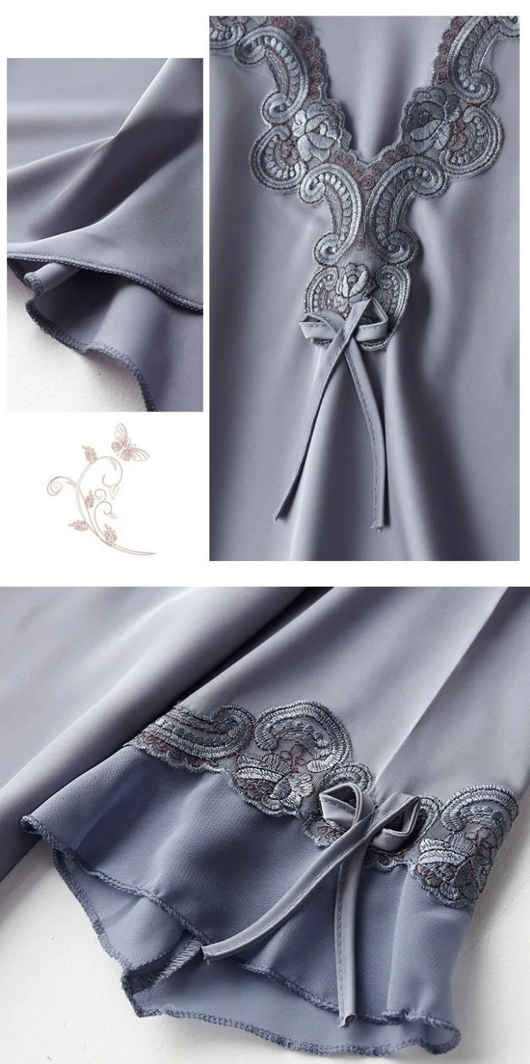 Женская ночная рубашка размера плюс, пикантная ночная рубашка, свободное шелковое кимоно, халат, Мягкая атласная Домашняя одежда, интимное белье 3XL