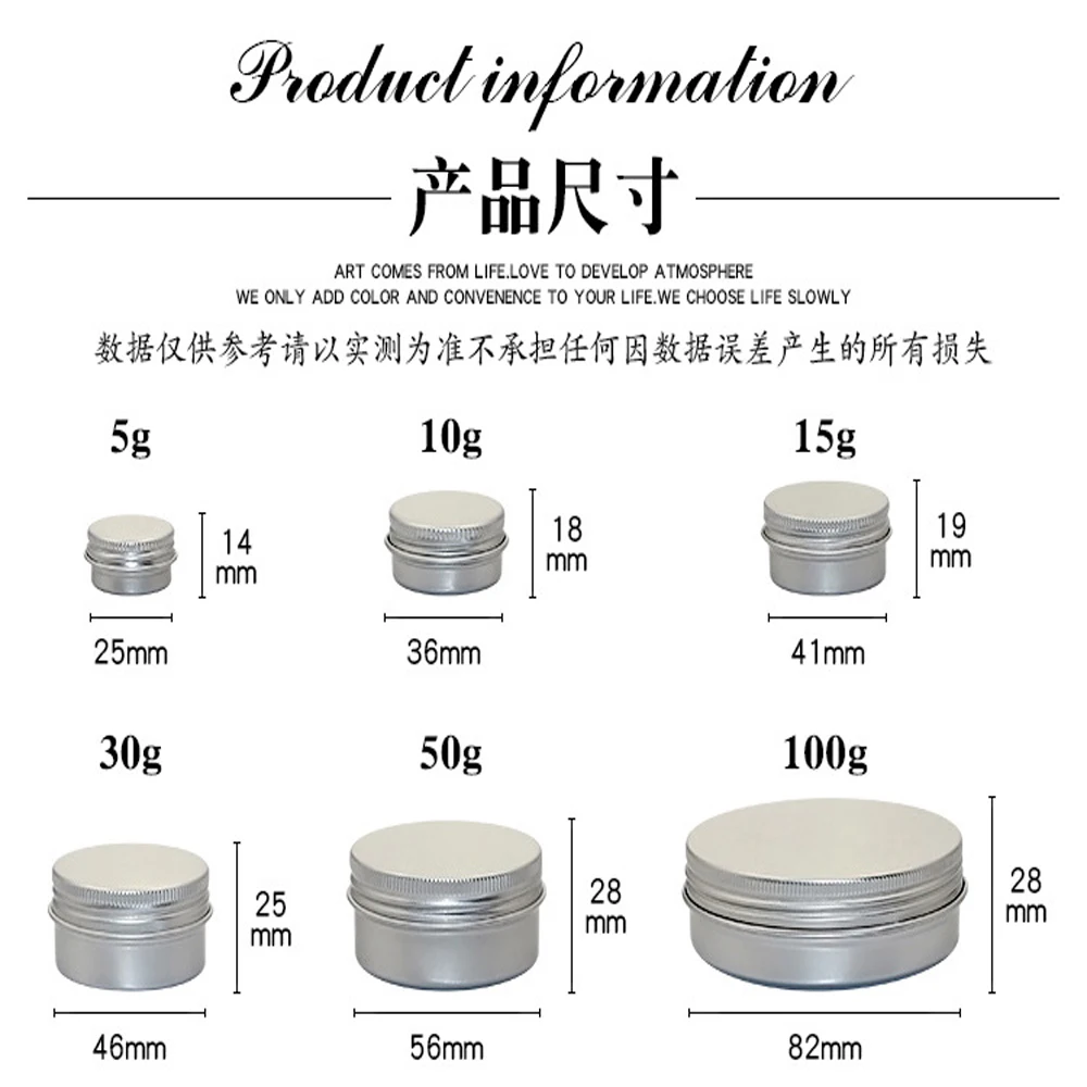 20 шт.партия, алюминиевая банка для крема, 5-100 мл