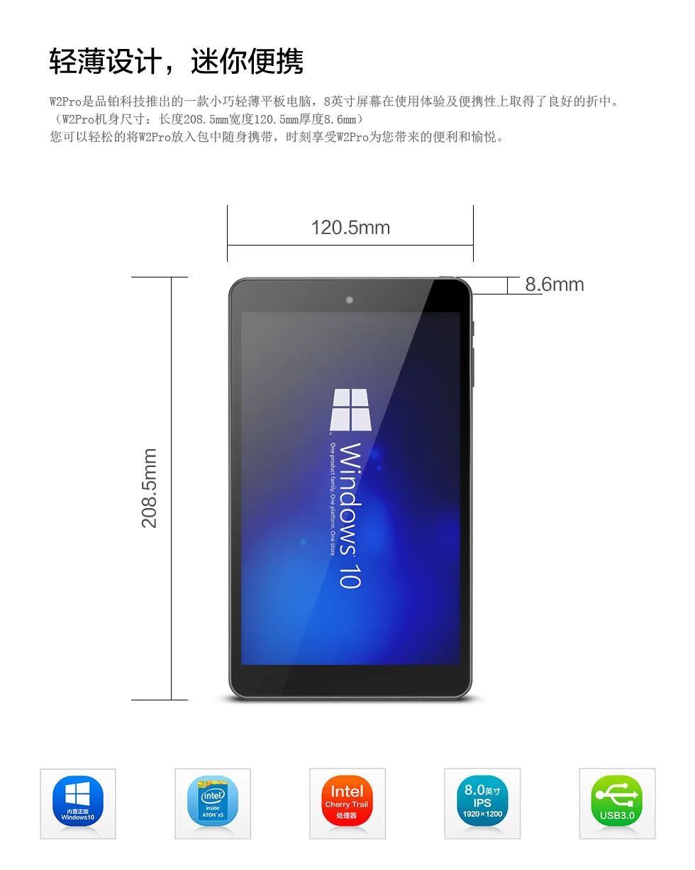 PiPo W2Pro 8 дюймов Windows 10 планшетный ПК 2 Гб Ram 32 Гб rom 1920*1200 IPS