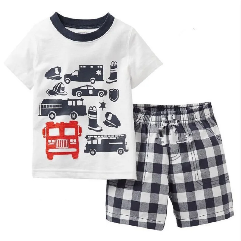 Комплект из 2 предметов, футболка и шорты из 2021 хлопка с рукавом 100% для маленьких мальчиков, От 2 до 7 лет