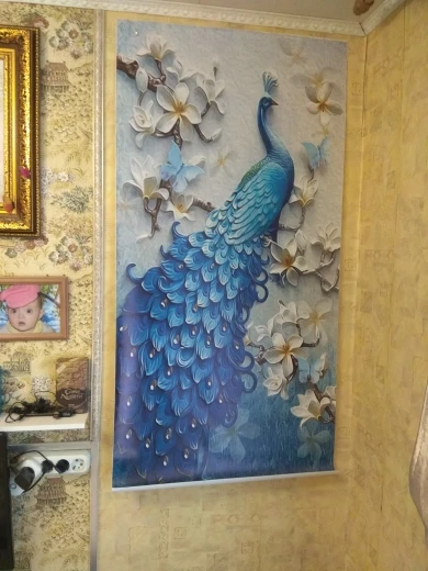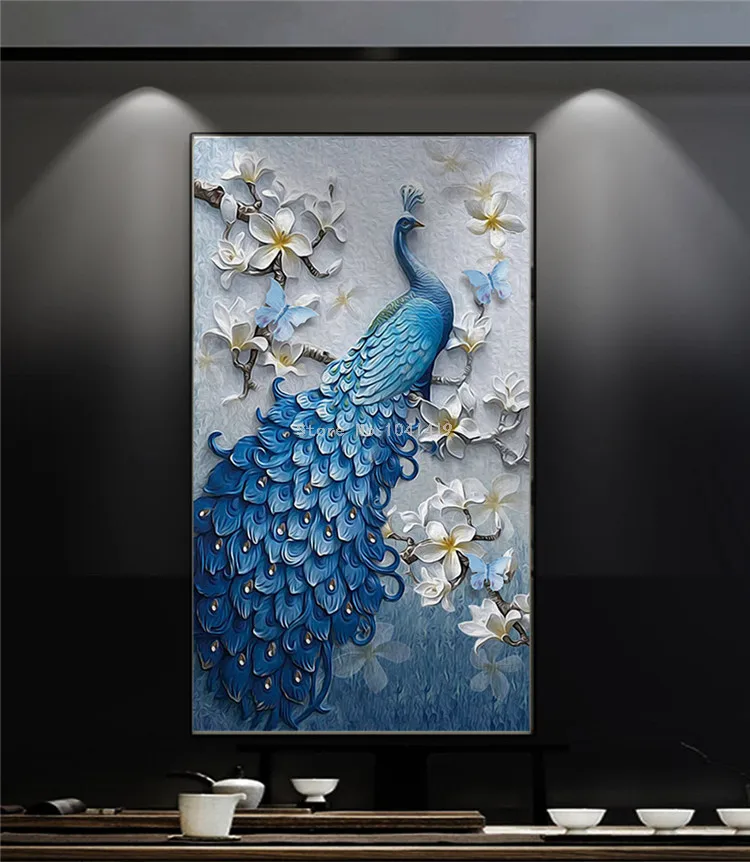 Пользовательские Настенные обои Европейский стиль 3D рельефные цветы синий павлин настенная живопись отель Гостиная Кабинет входной Декор фрески