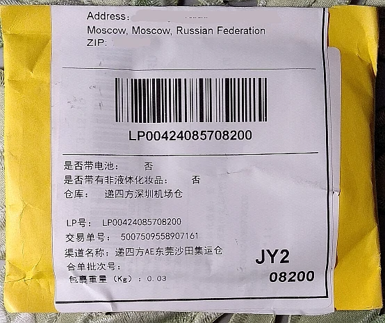 Страна: RU Доставка: Cainiao Super Economy for Special Goods 20.10.2020