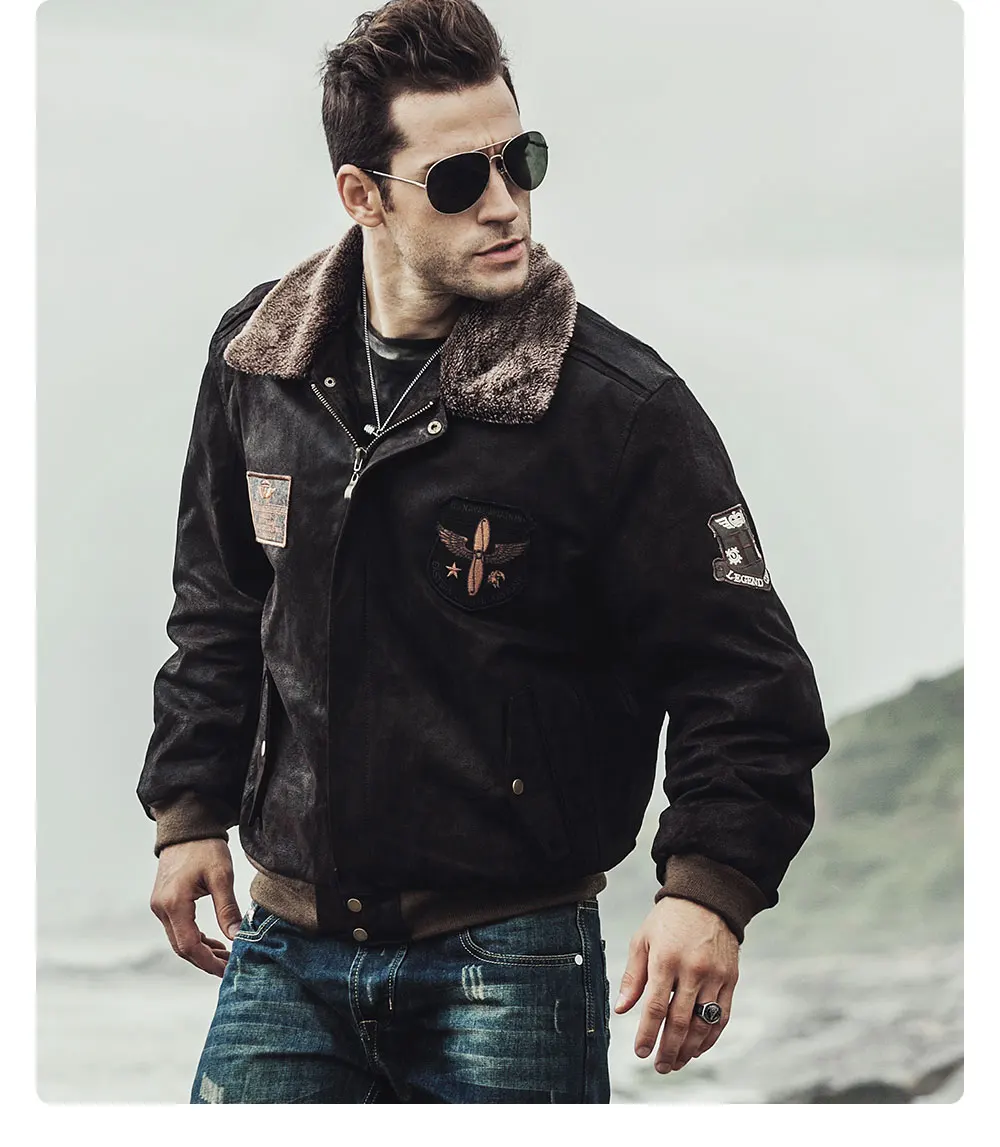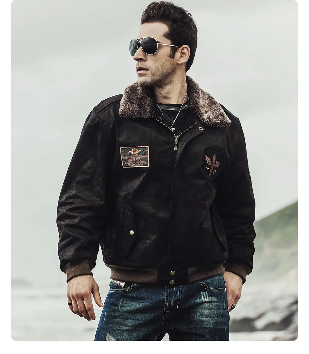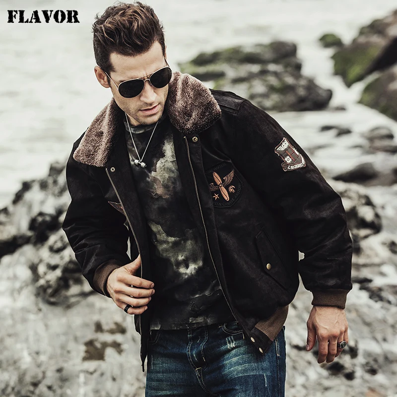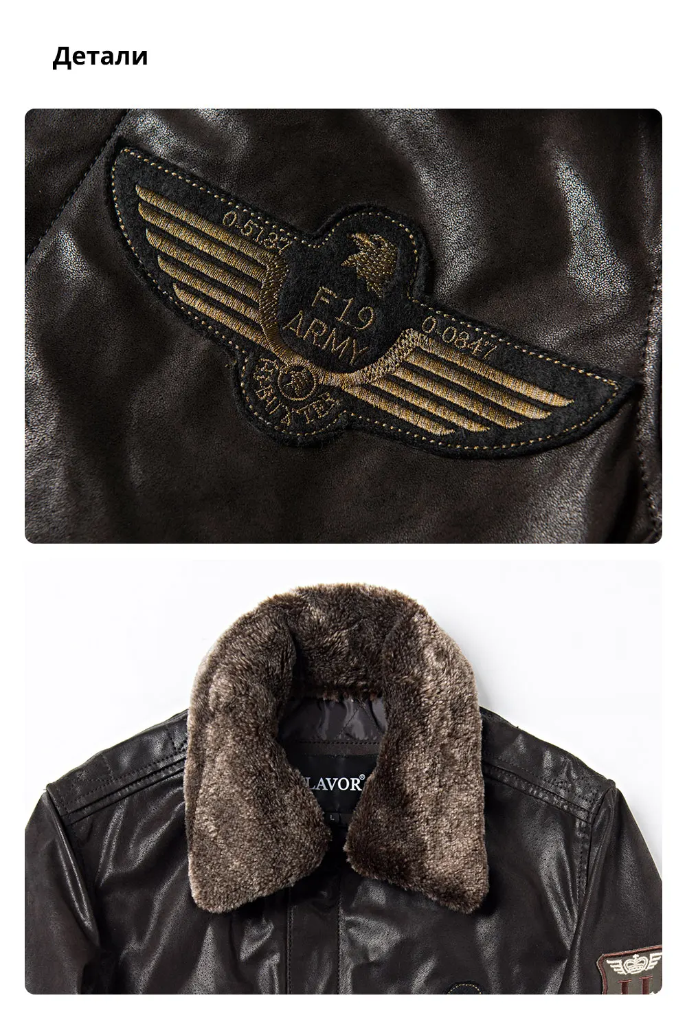Kожаная куртка мужская пилот FLAVOR, темно-коричневая теплая лётная куртка из натуральной кожи, кожаный бомбер, на зиму