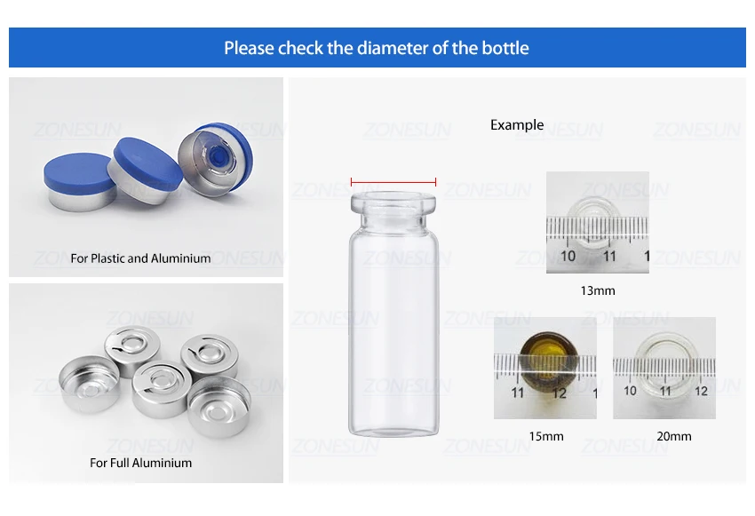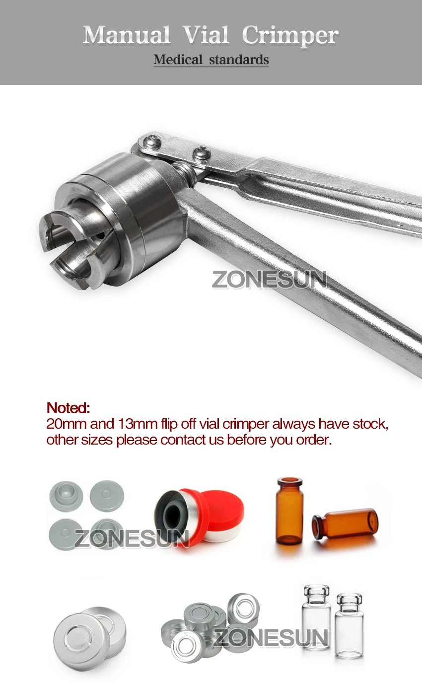 Подходит для флаконов, бутылок с антибиотиками, инфузионных бутылок. Этот инструмент используется для укупорки алюминиевых крышек или алюминиево-пластиковых крышек с тремя размерами 13, 15 и 20 мм.