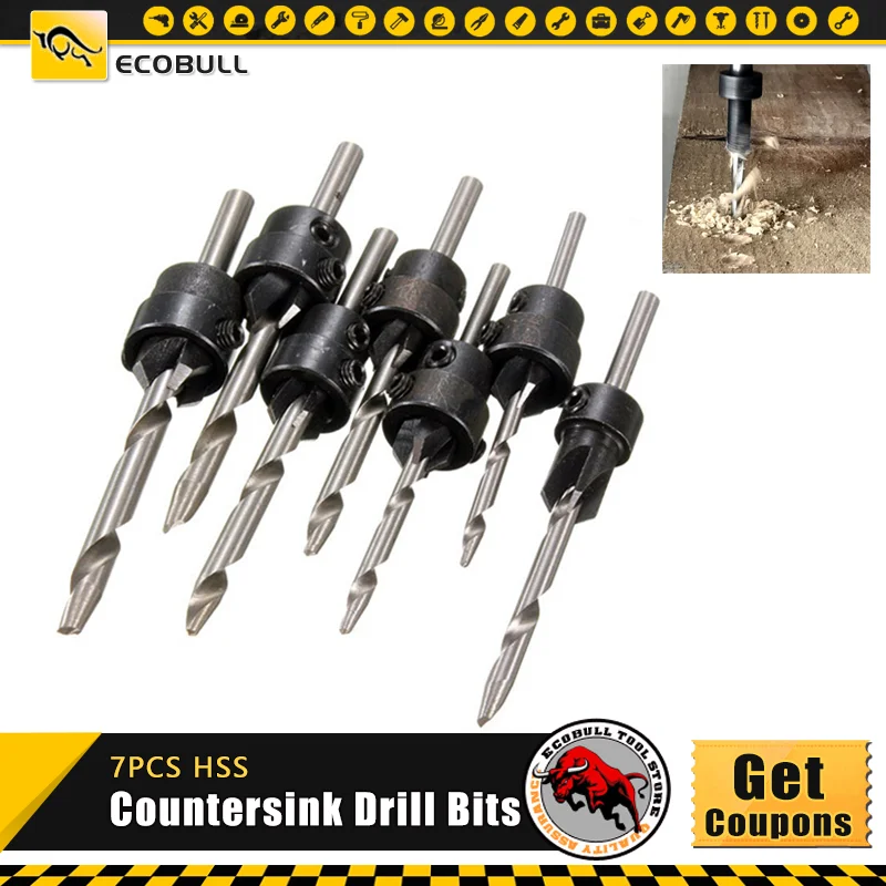 Пегасик 7 шт. HSS деревянных конические зенковки набор сверл ограничитель глубины Регулируемый воротник деревообработки дерево Инструменты Малый Гаечные ключи комплект