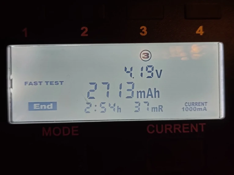 Протестировано с Imax B6 - 2650-2700 mAh при 0.5A или 0.7A