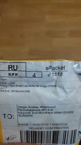 Заказом доволен, отправили быстро. В до СПб около трёх недель. С продавцом не связывался не было необходимости. Качество соответвует цене. К покупке советую. Всем спасибо за внимание.