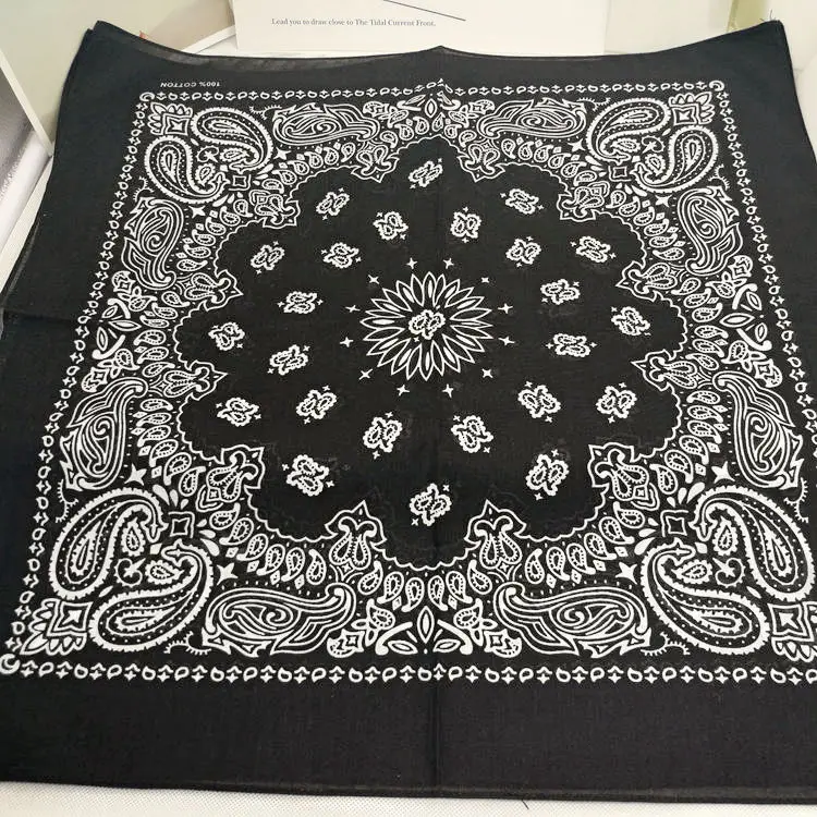 Бандана для женщинмужчинмальчиковдевочек, 100% хлопок, квадратный шарф в стиле хип-хоп, головная повязка с принтом пейсли, черный красный цвета, 55 х55 см