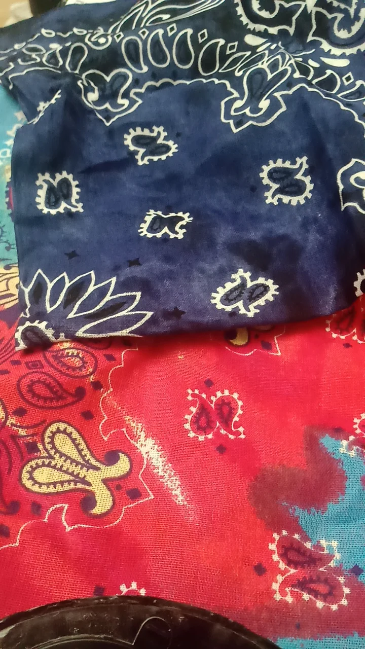 Нормальные, яркие банданы. Хотя в сравнении с дешёвымм банданами от «TCH trading» привезёнными из Тайланда, сильно устапают и в плотности ткани, и прошивка края хуже, и на ощупь грубее. Думаю так долго не проживут, но и цена низкая. На втором и третьем фото сравнение с банданой, которая у меня уже, страшно подумать, 7 лет! )) Жаль на али маленький выбор бандан-платков. Это универсальная вещь для всего, и на голову, и как маска, повязка, и всё прочее. Современные банданы-трубы не могут заменить функционал таких платков. Видимо придётся копить на отпуск. ))