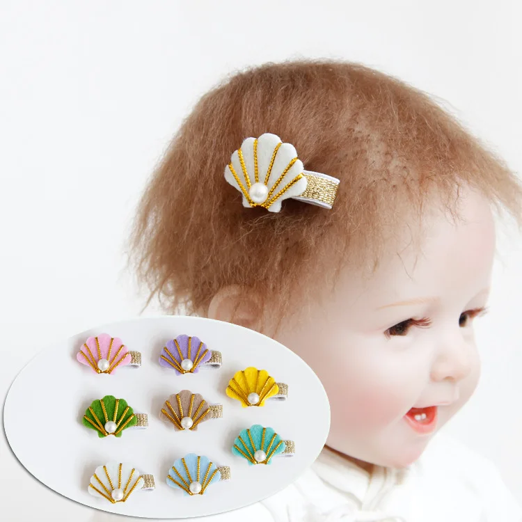 20 шт., корейская мода, милые блестящие фетровые заколки для волос для девочек, каваи, жемчуг, Морская ракушка, детские заколки для волос, аксессуары для волос для маленьких девочек