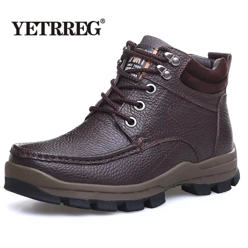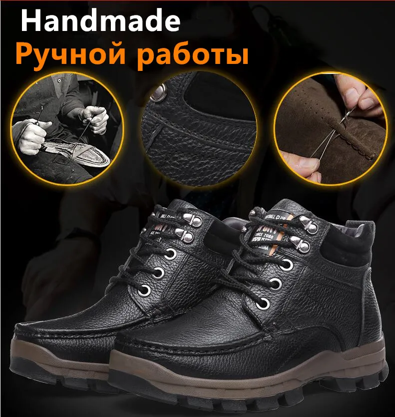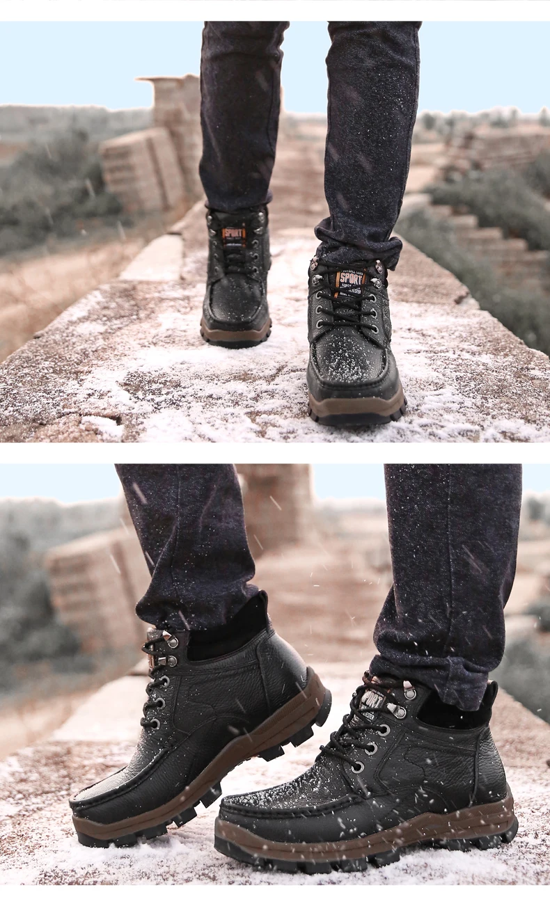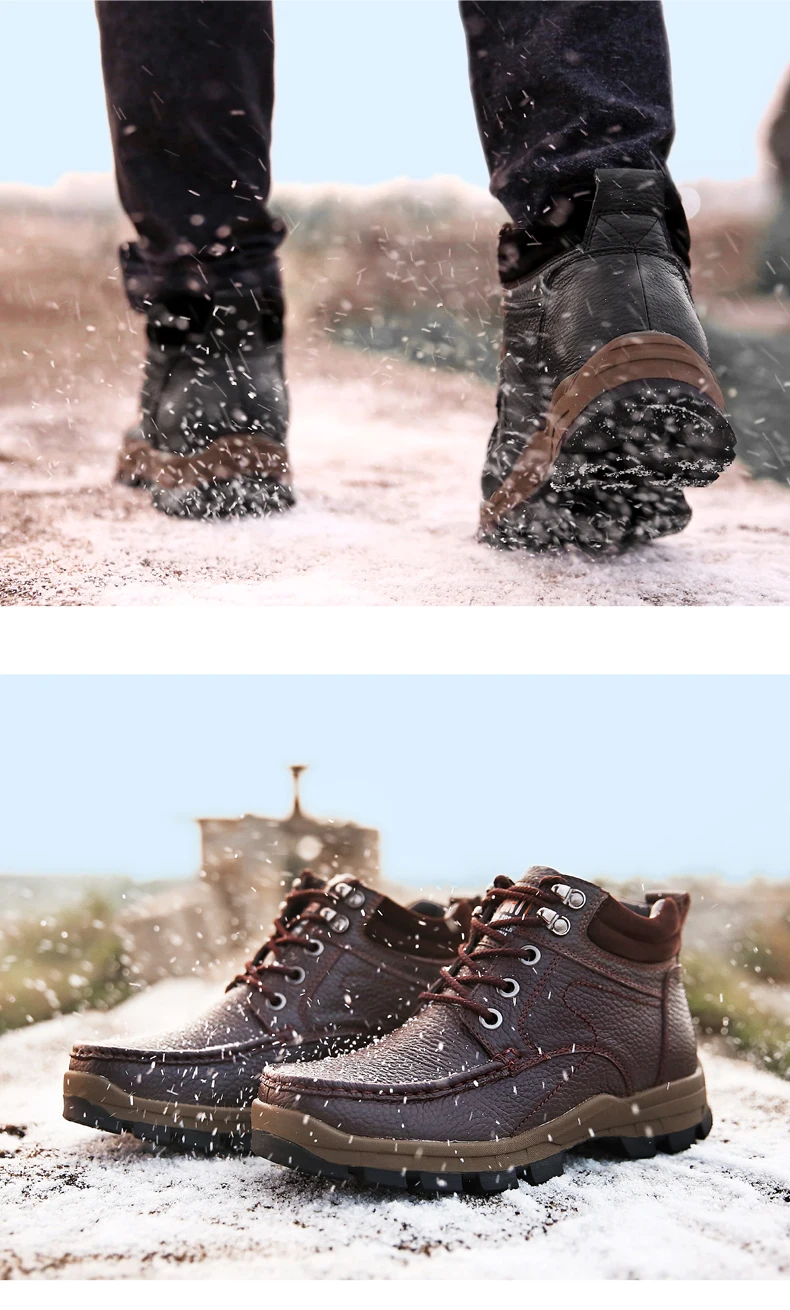 Ботинки VANCAT мужские из натуральной кожи, теплые ботинки, повседневная обувь в байкерском стиле, большие размеры, для зимы