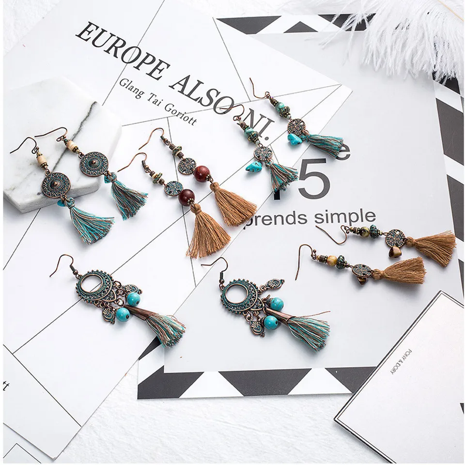 Античная Винтаж богемные этнические Кисточки из бахромы листьев Камни Серьги для Для женщин Обувь для девочек Юбилей Свадебная вечеринка Jewelry Талисманы