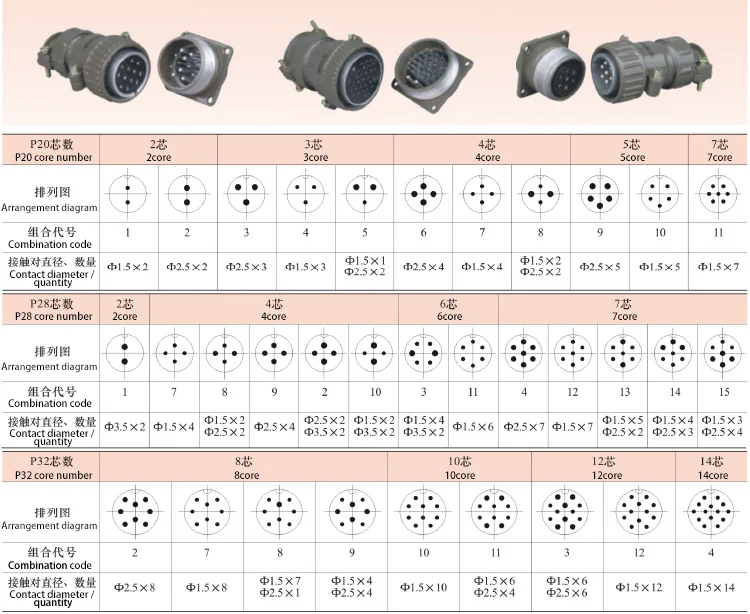 Авиационный штекер, круглый разъем серии P20, 2.3.4.5.7, диаметр сердечника 20 мм, авиационный штекер