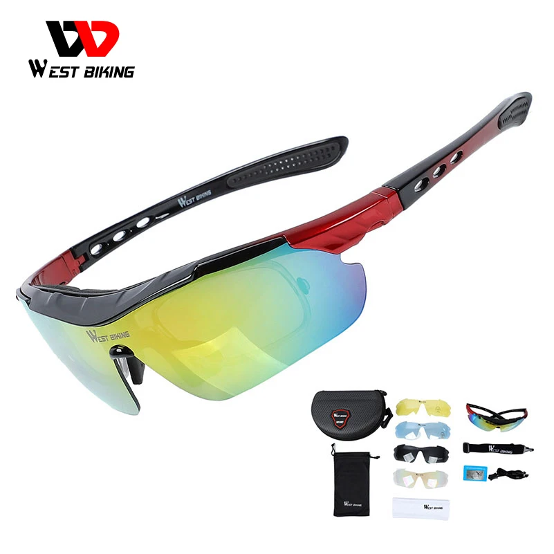 WEST BIKING, велосипедные очки, поляризационные, велосипедные солнцезащитные очки, 5 линз, ветрозащитные, противотуманные, с рамкой для близорукости, спортивные, MTB, велосипедные очки
