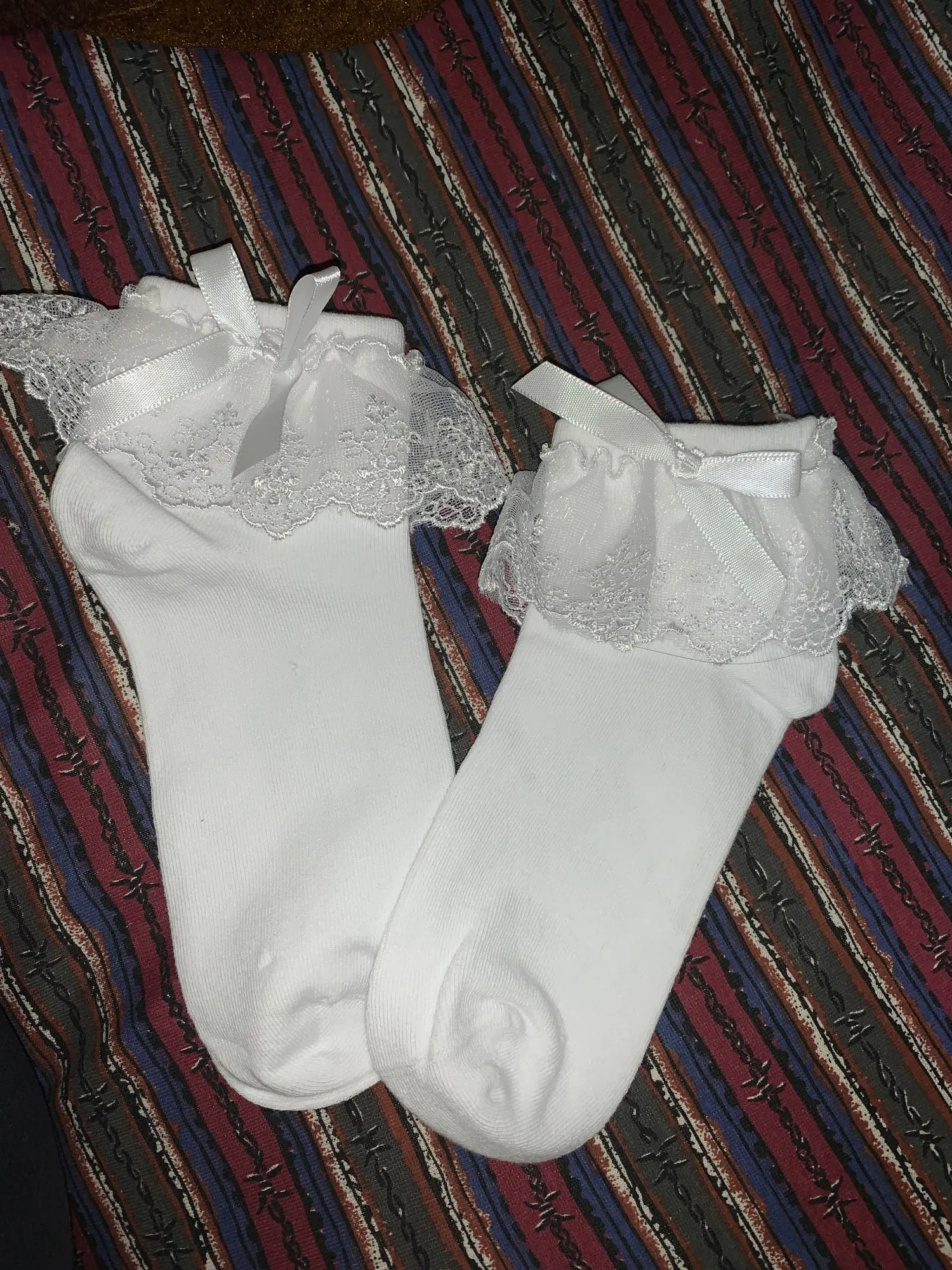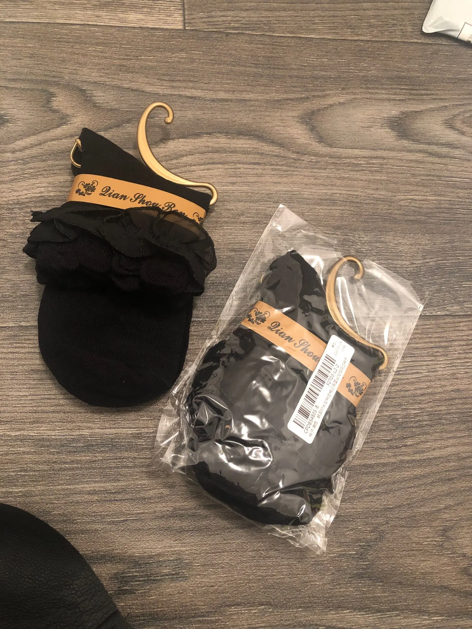 В восторге, это действительно мило, вам нужно получить их! Отслеживание хотело бы очень точно, но оно подошло сюда в течение 3,5 недель! Выглядит очень хорошо с туфлями Мэри Джейн, я Размер 9, таким образом, они тянутся довольно хорошо :)