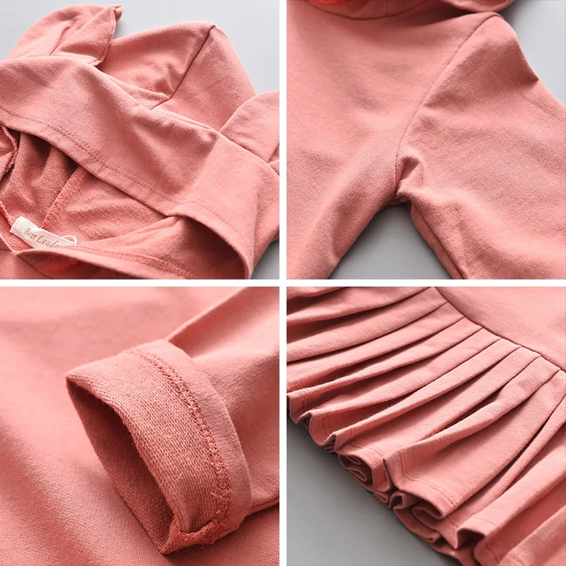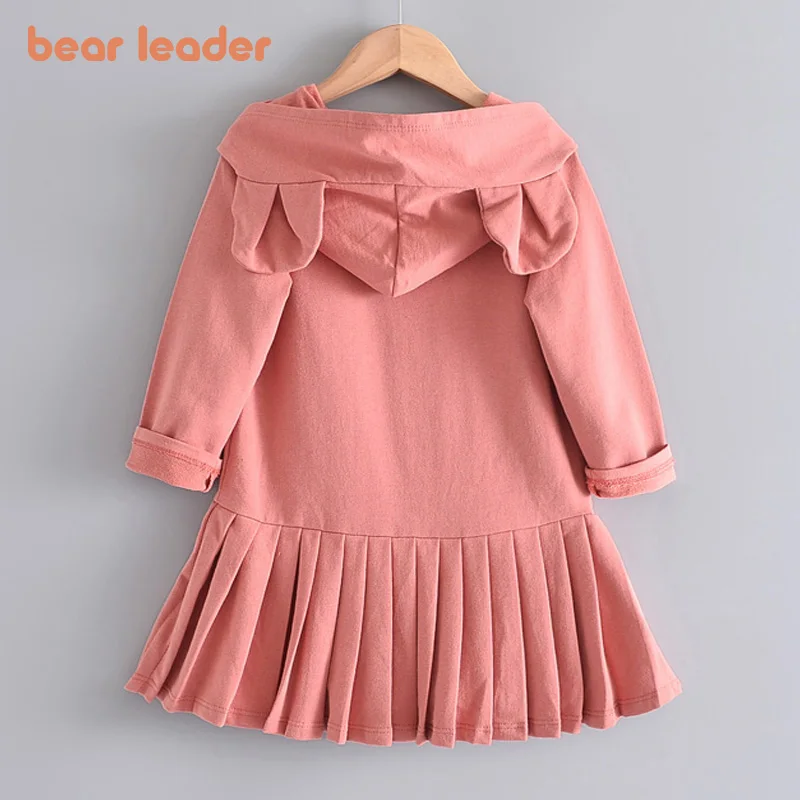 Детское платье для девочек Bear Leader, с капюшоном, с кроличьими ушками и рюшами, с длинным рукавом