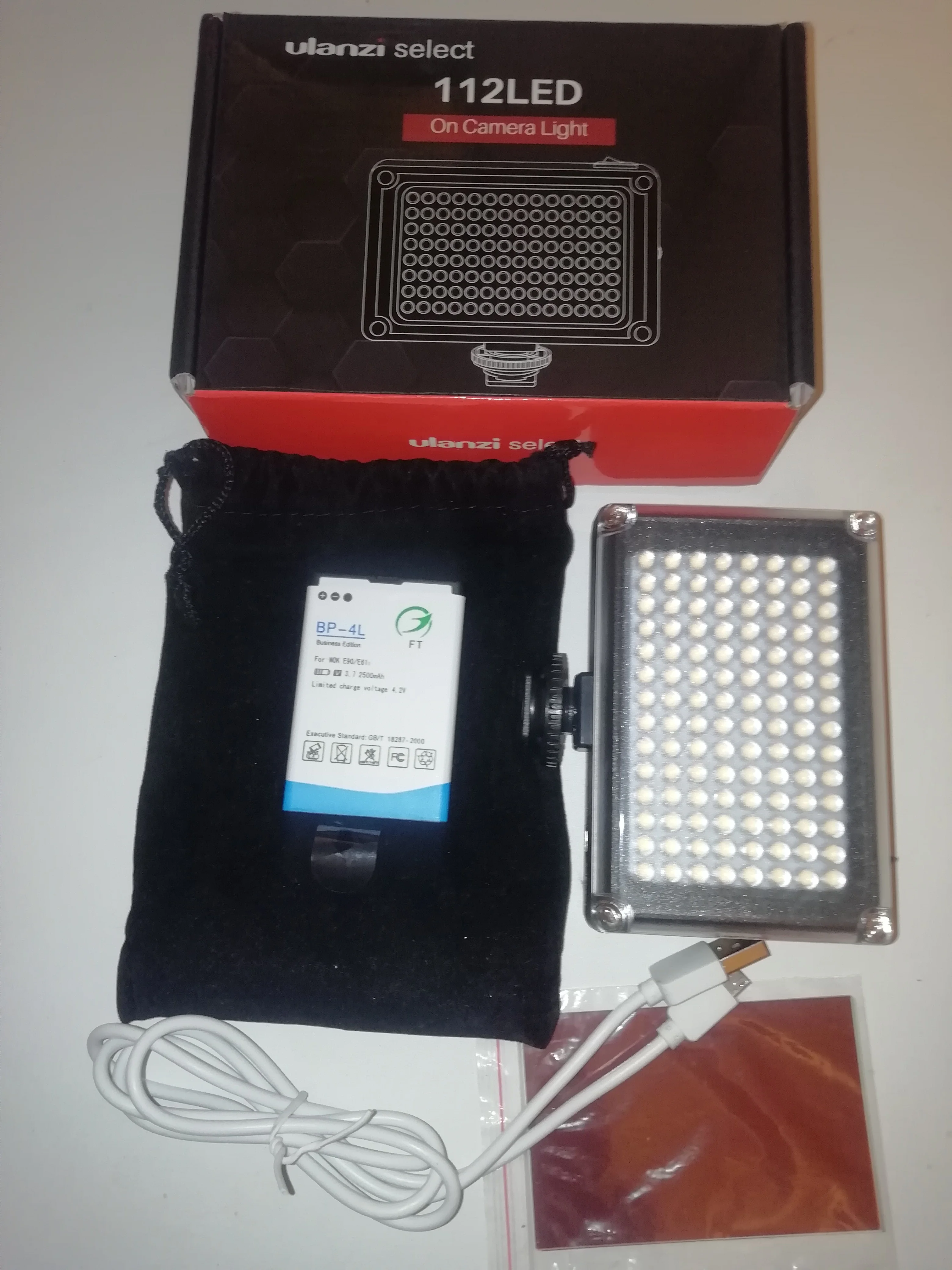 Отличный накамереый свет. Довольно яркий, на 112 LED. Снимала модель ночью, свет стоял на штативе - получились неплохие кадры, учитывая, что матрица фотоаппарата - кроп. В комплекте идут цветные фильтры и аккумулятор, но от батареек (не идут в комплекте) все равно светлее. Свет регулируется, заряжается от mini-usb. При полной зарядке может светить 2 часа беспрерывно. Доставили быстро, с российского склада, только накамереый свет - за 4 дня. Но! У меня в комплекте к свету шёл U-образный стабилизатор. И о нем совершенно забыли. Открыла спор, продавец сказал, что понял и отправил. Срок защиты меня как покупателя подходил к концу (3 недели ждала свой стабилизатор!). К концу срока он пришел, качественный и хороший. Пригодится. Вместе с ним пришел держатель для телефона. Его можно на стабилизатор или на штатив накрутить. В целом довольна, если не считать потрепанных нервов из-за несвоевременной доставки стабилизатора. Снижать не буду, но было крайне неприятно.