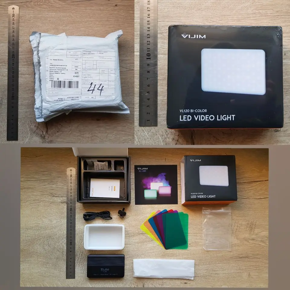 Посылка пришла своевременно, быстрее, чем я ожидал. В комплект входит 2 комплекта ламп и 2 комплекта небольших штативов с расширением для телефона или освещения. Коробка со светодиодной подсветкой содержит сам свет, софтбокс, Кабель зарядного устройства, цветные фильтры и универсальную головку для штатива. Свет компактный (меньше, чем смартфон в размере), но очень яркий, может быть затемнен и настроен на другой тон. Все подошло хорошо упаковано и работает, как и ожидалось.